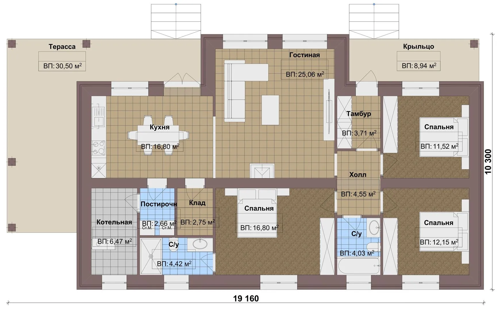 Одноэтажный дом FIXPLANS — 2069