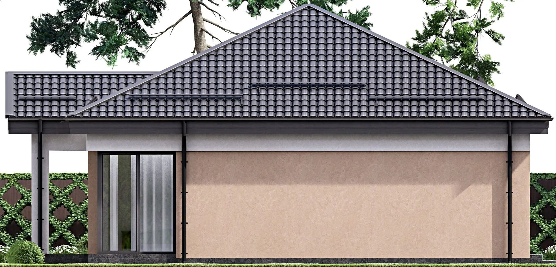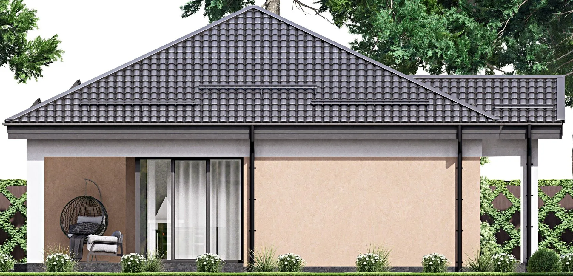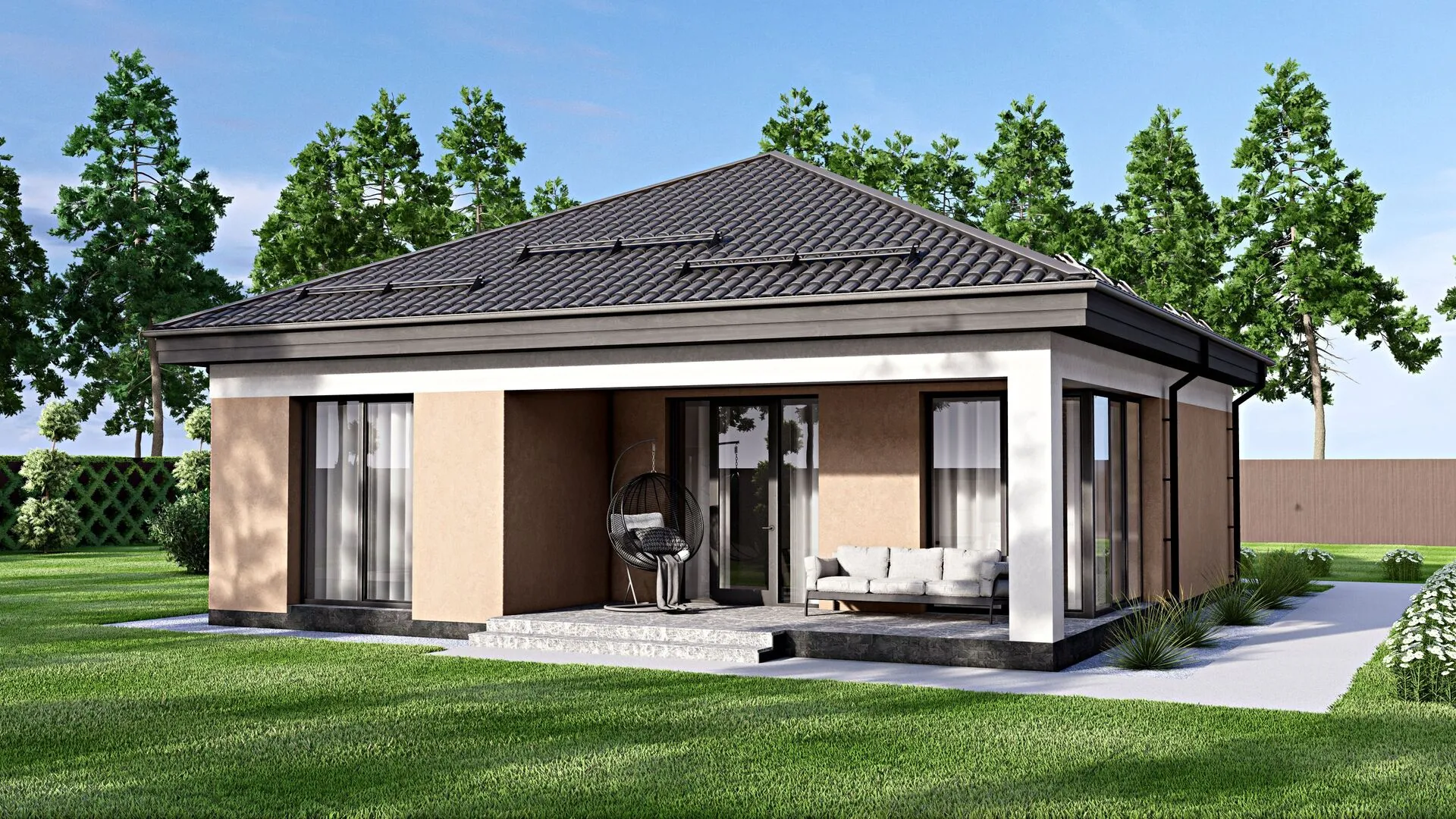 Одноэтажный дом с крыльцом и террасой