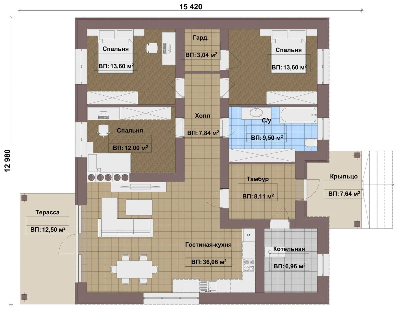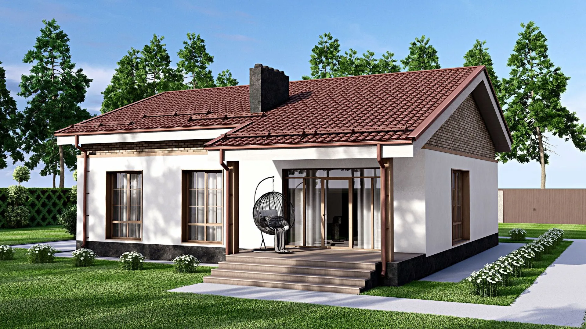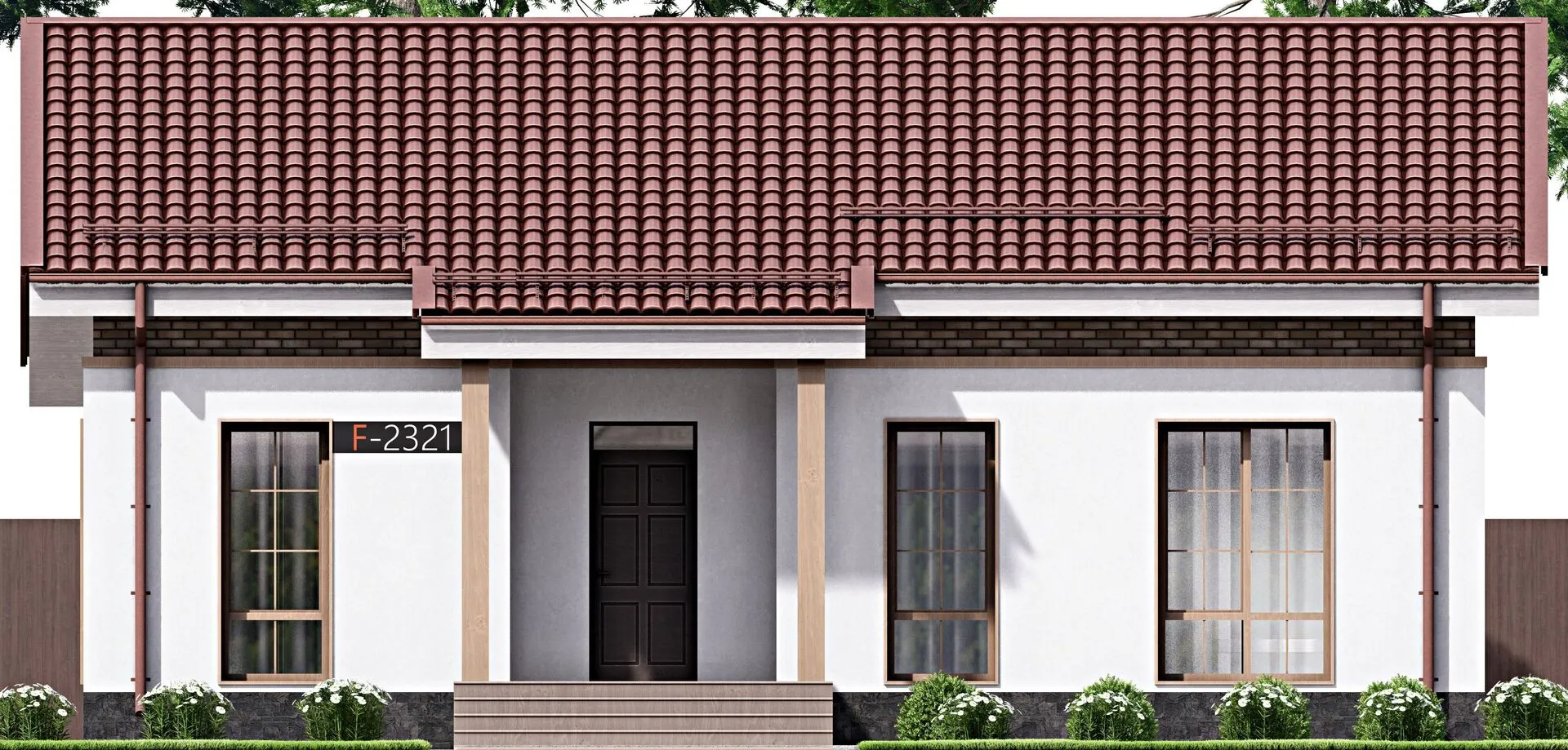 Одноэтажный кирпичный дом COMFORT — 118 m2 Красный облицовочный кирпич