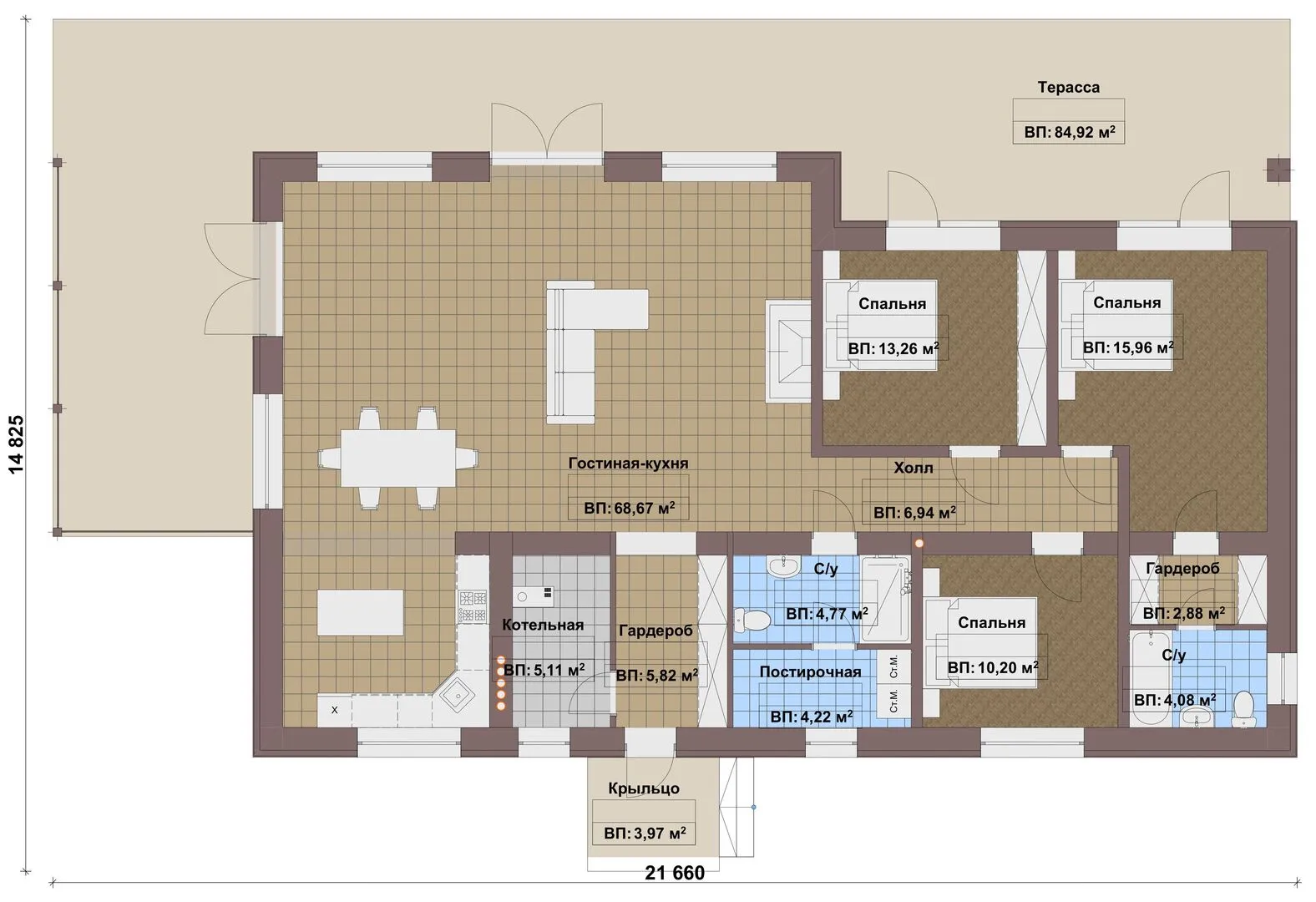 Заказать конусльтацию по:Одноэтажный дом FIXPLANS — 2492