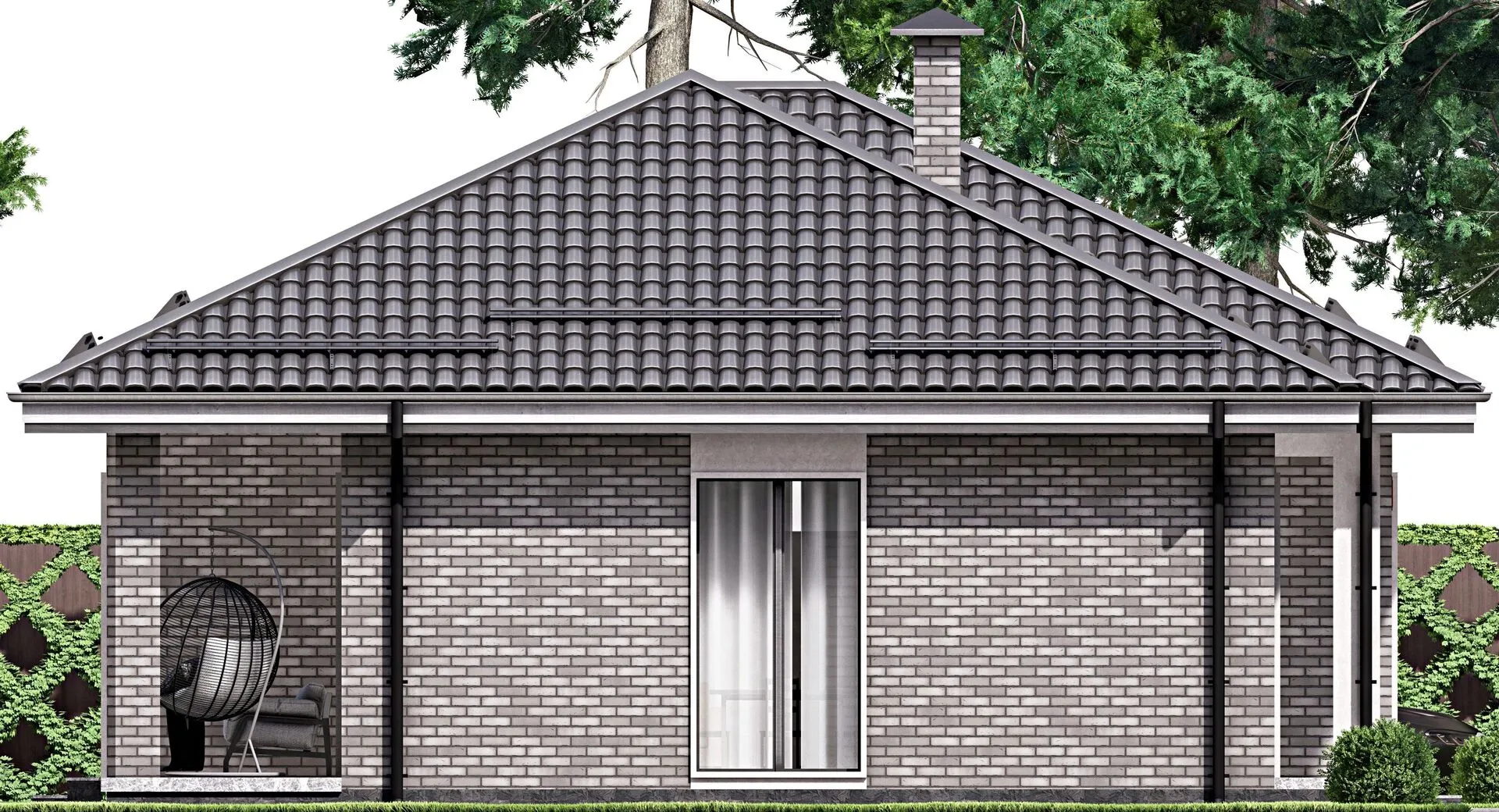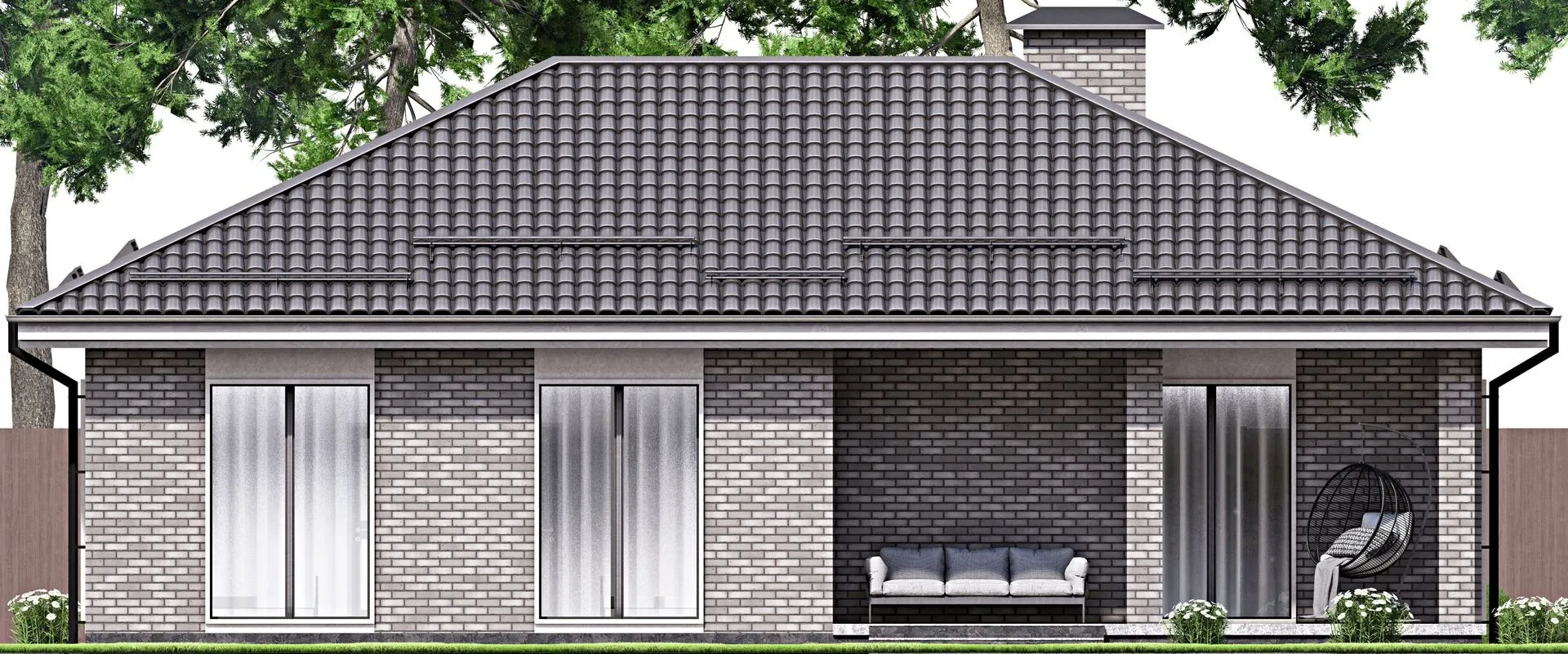 Одноэтажный дом с крыльцом