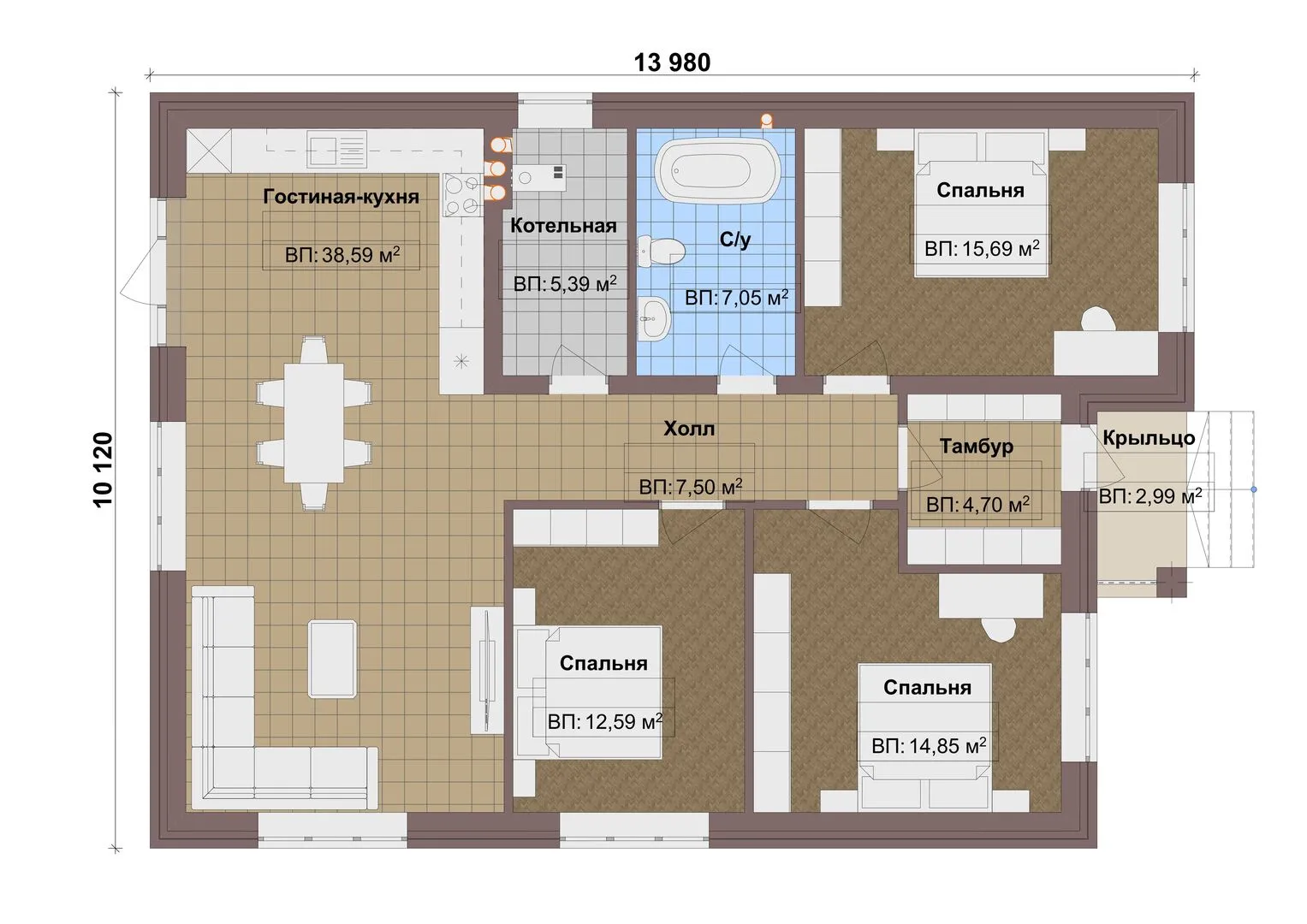 Площадь дома 102 м2