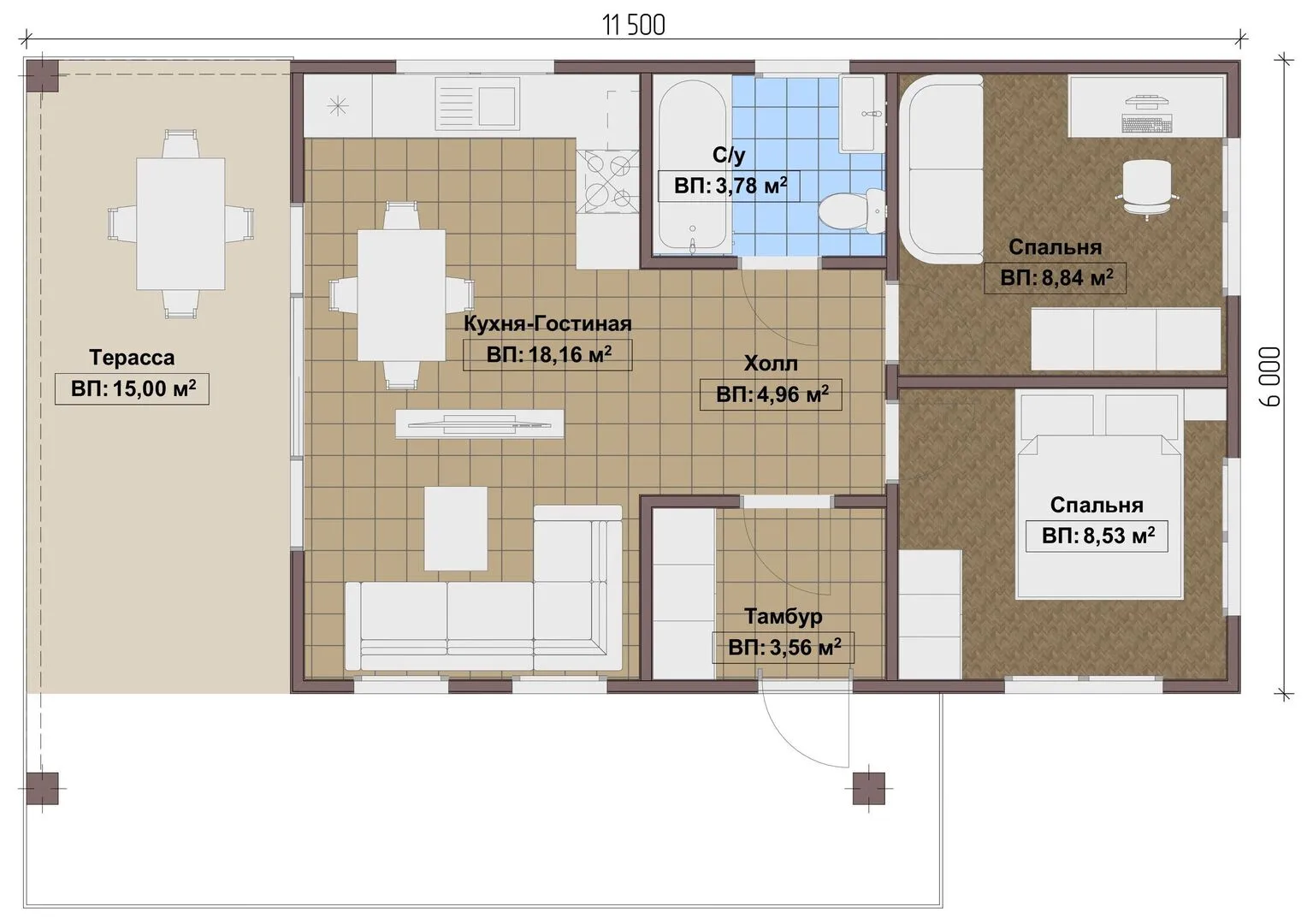 Площадь дома 59 м2