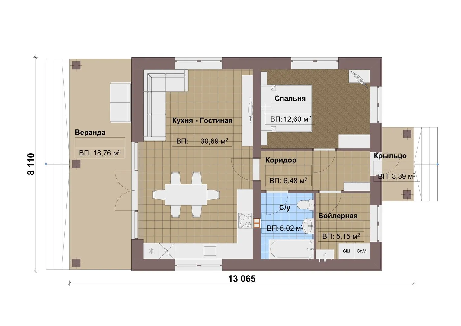 Одноэтажный дом Fixplans — 1016