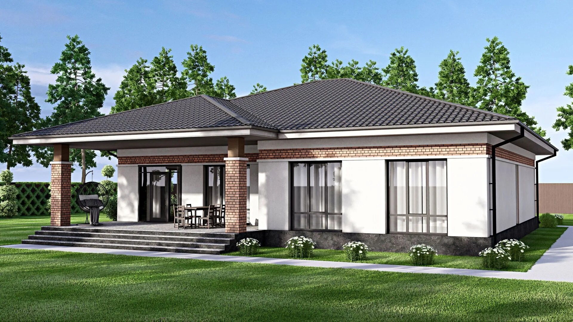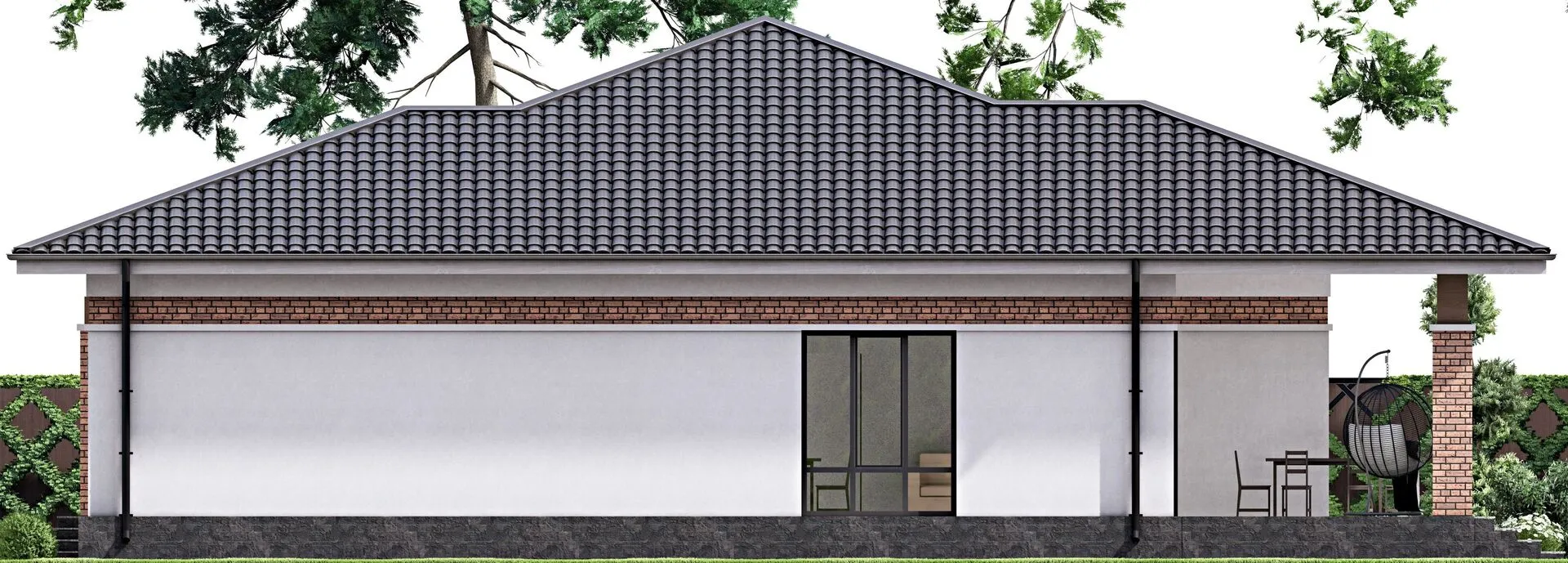 Одноэтажный кирпичный дом PREMIUM — 158 m2 Белый облицовочный кирпич