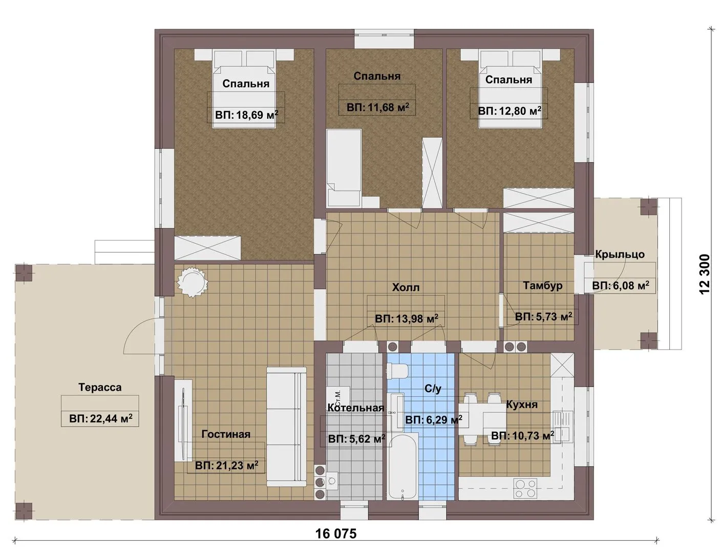 Заказать конусльтацию по:Одноэтажный дом FIXPLANS — 1349