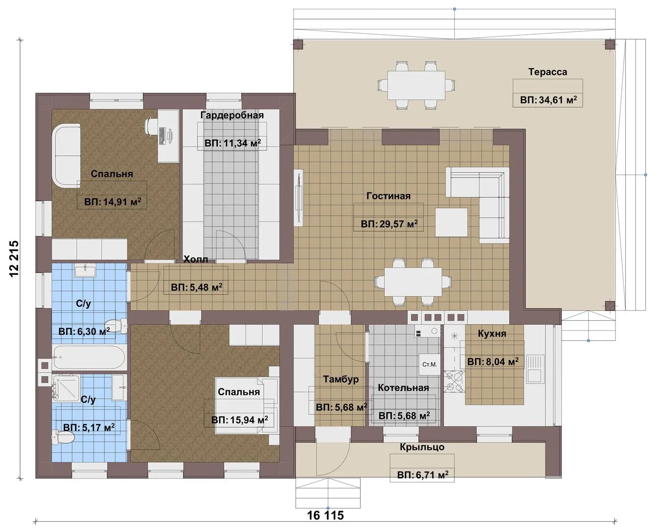 Заказать конусльтацию по:Одноэтажный дом FIXPLANS — 1430