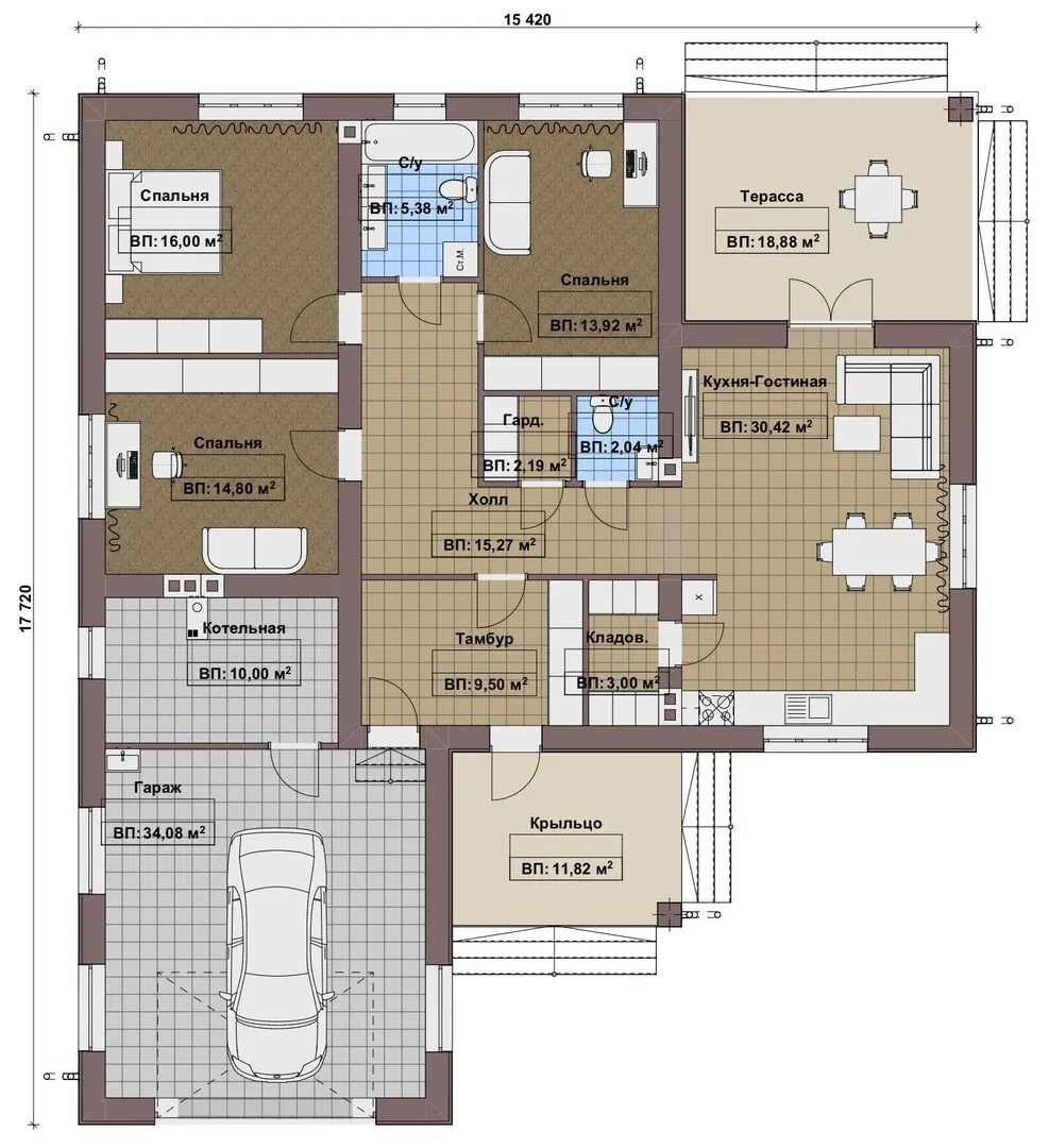 Заказать конусльтацию по:Одноэтажный дом FIXPLANS — 1673