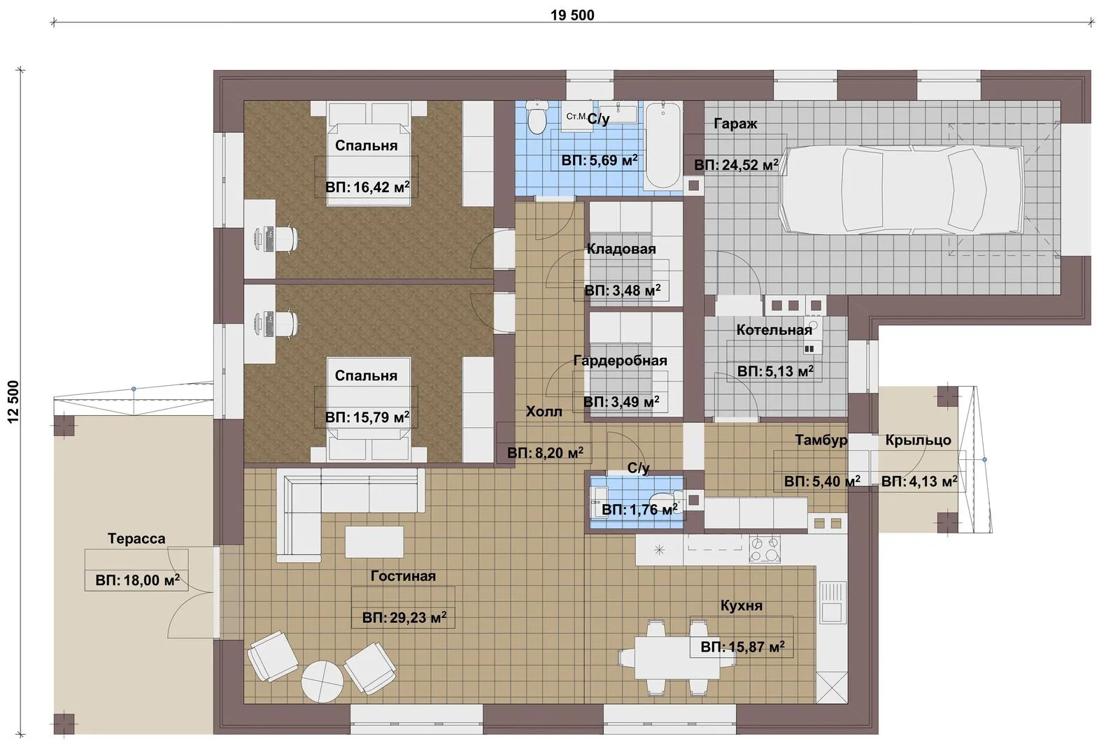Заказать конусльтацию по:Одноэтажный дом FIXPLANS — 1718