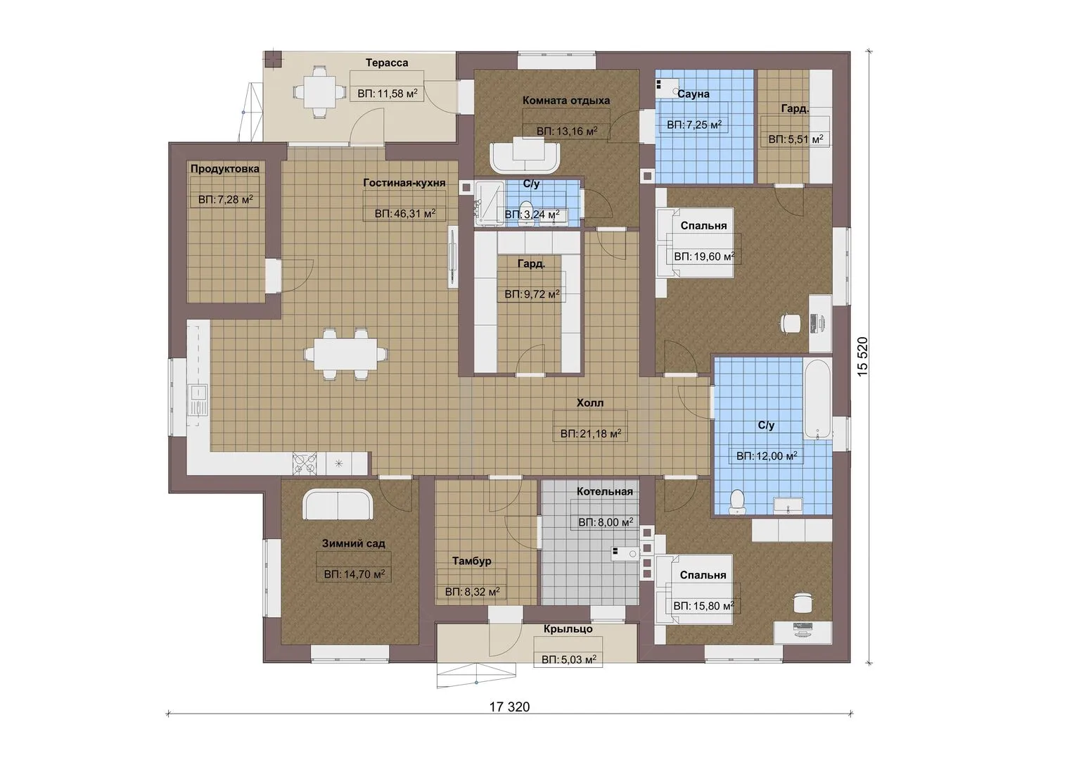 Заказать конусльтацию по:Одноэтажный дом FIXPLANS — 1745