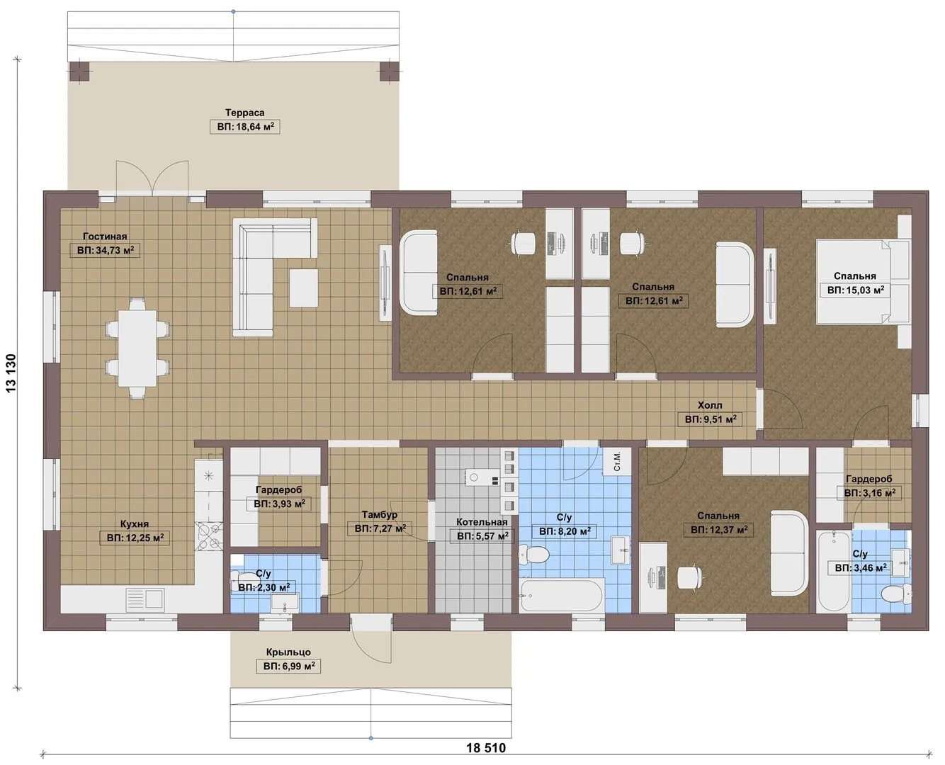 Одноэтажный дом FIXPLANS — 1970