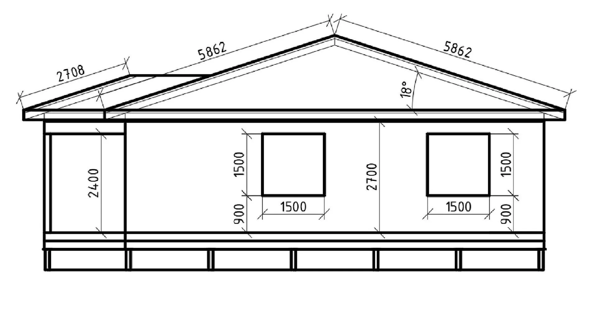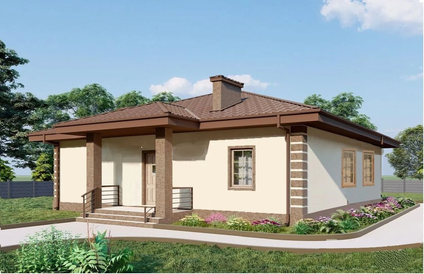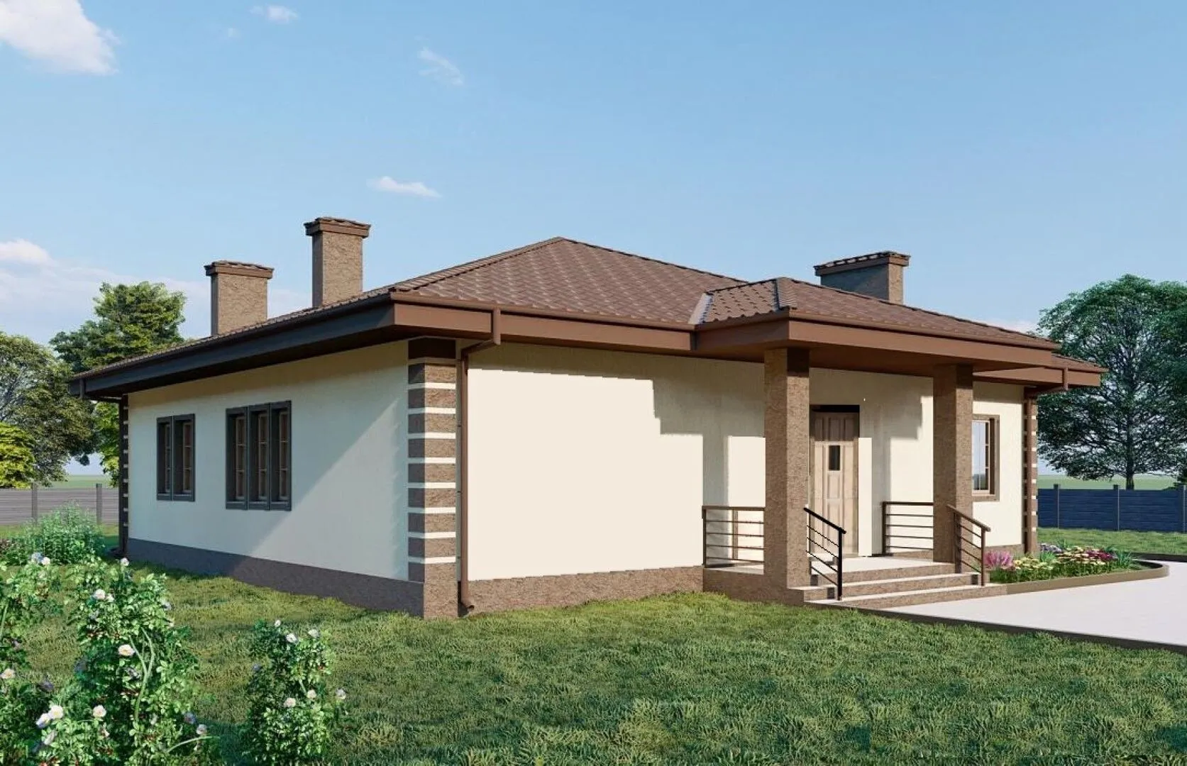 Фото 1 Одноэтажный дом из бруса в классическом стиле