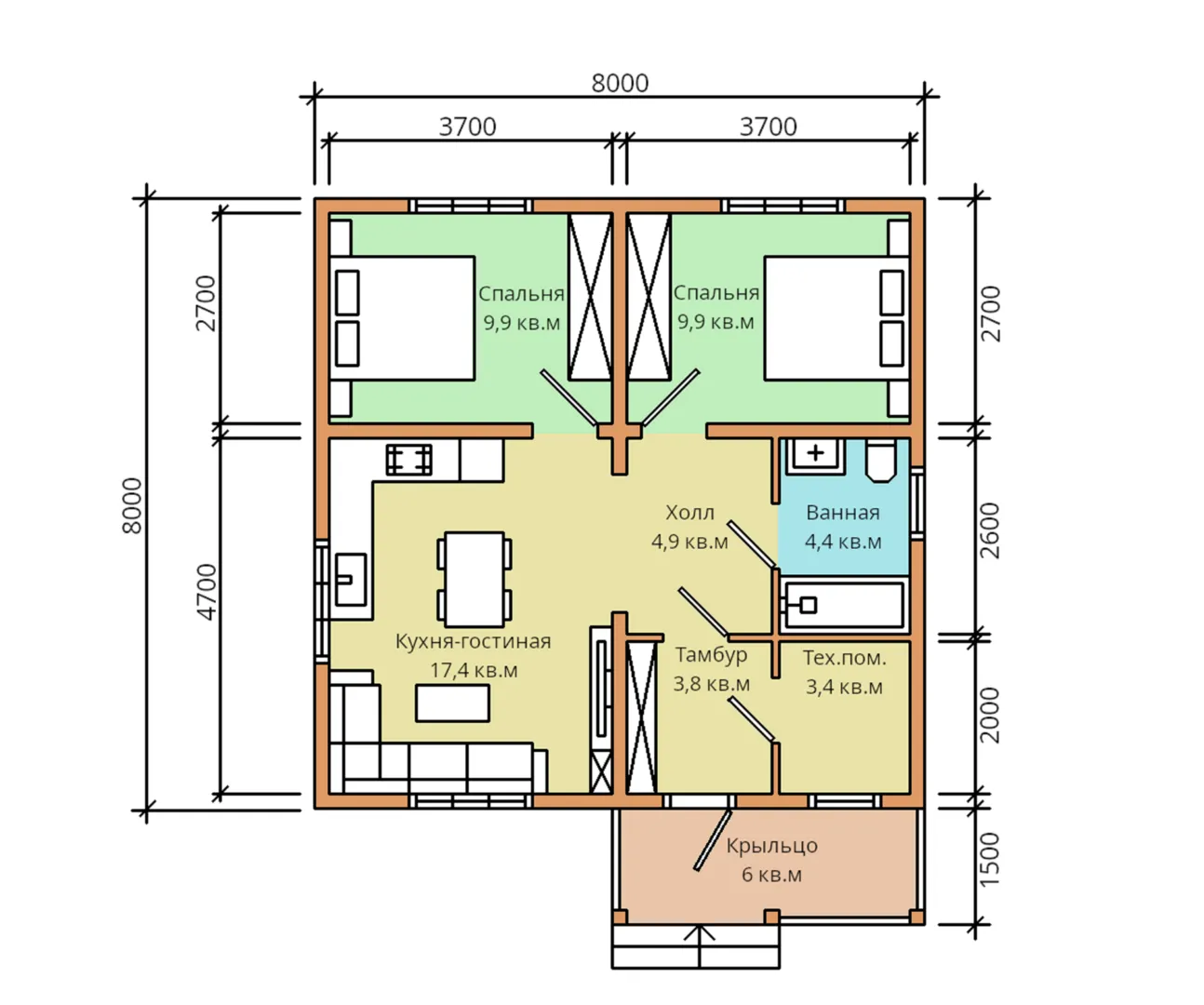 Одноэтажный дом из бруса