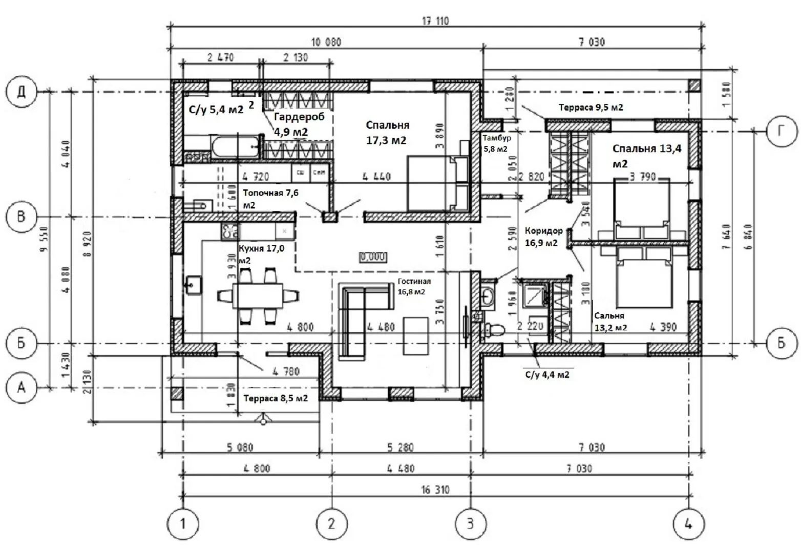 Заказать конусльтацию по:Одноэтажный дом из газобетона ГД-1-122