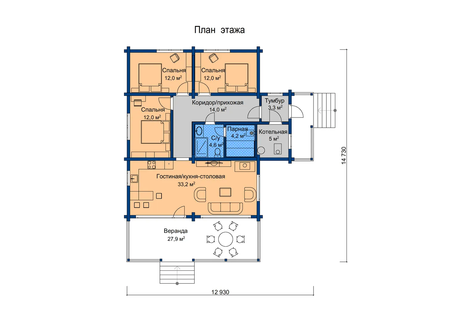 Одноэтажный дом из клееного бруса 3-20-3