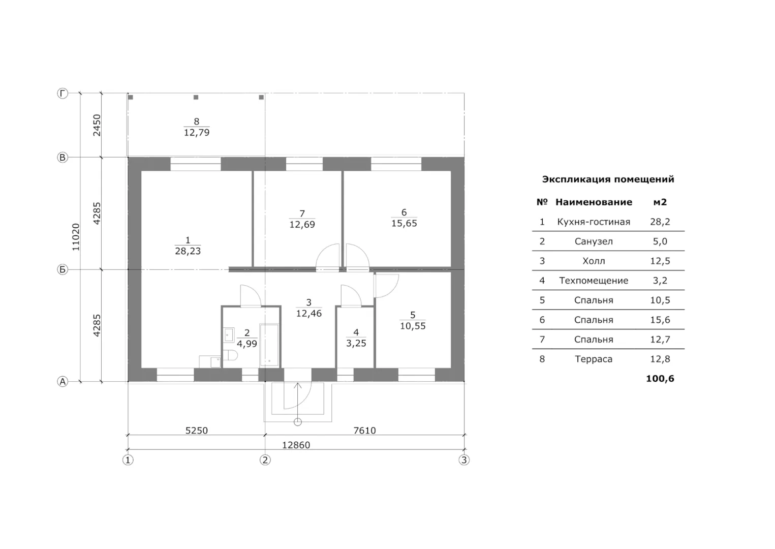 Одноэтажный дом К-100