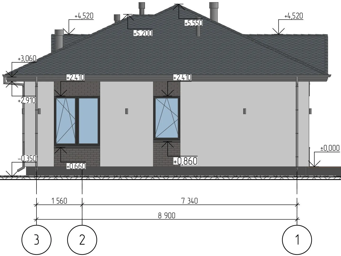 Заказать конусльтацию по:Одноэтажный дом «Ким» 83.14м2