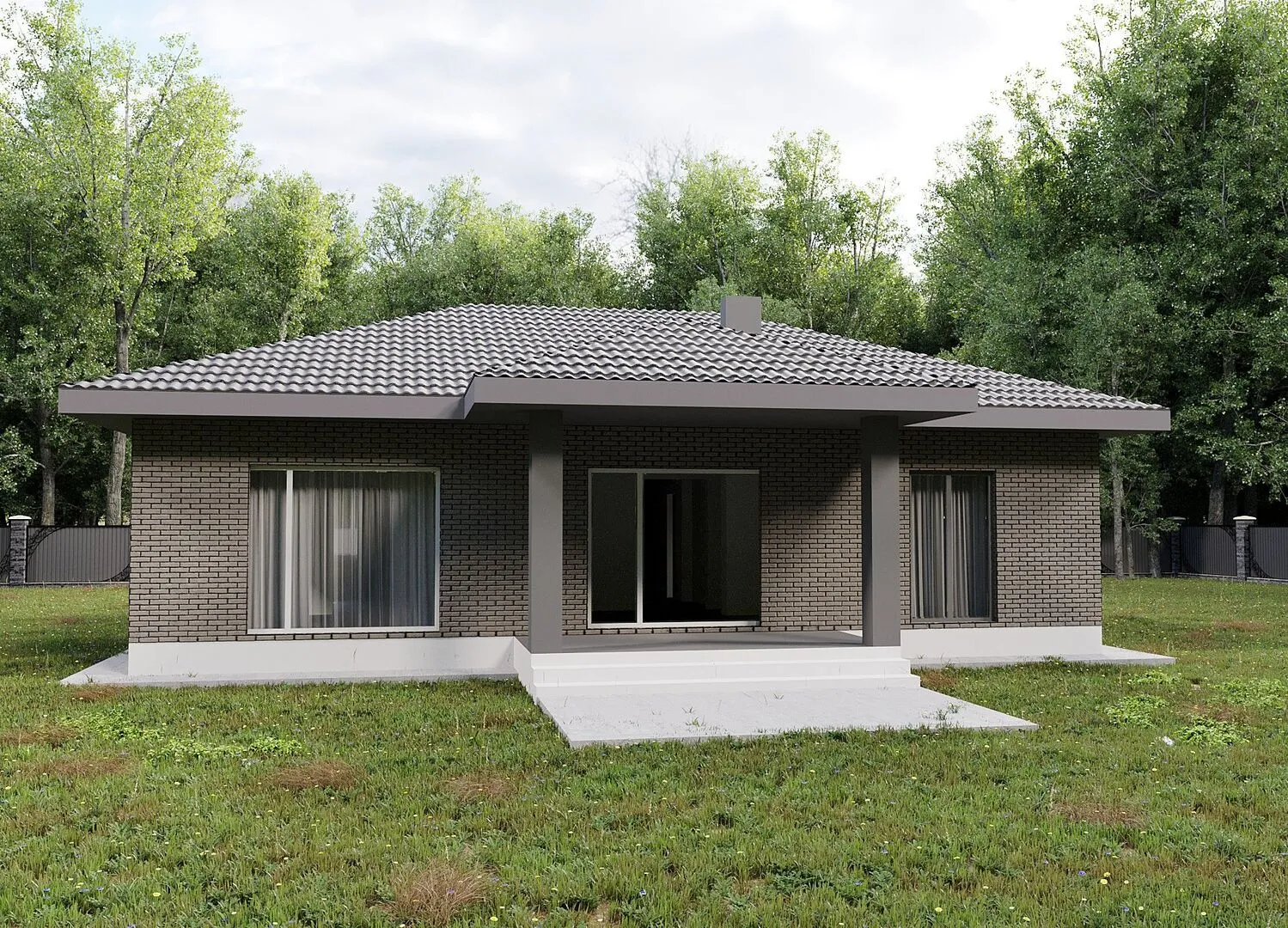 NODO-150. Одноэтажный дом с крыльцом и террасой