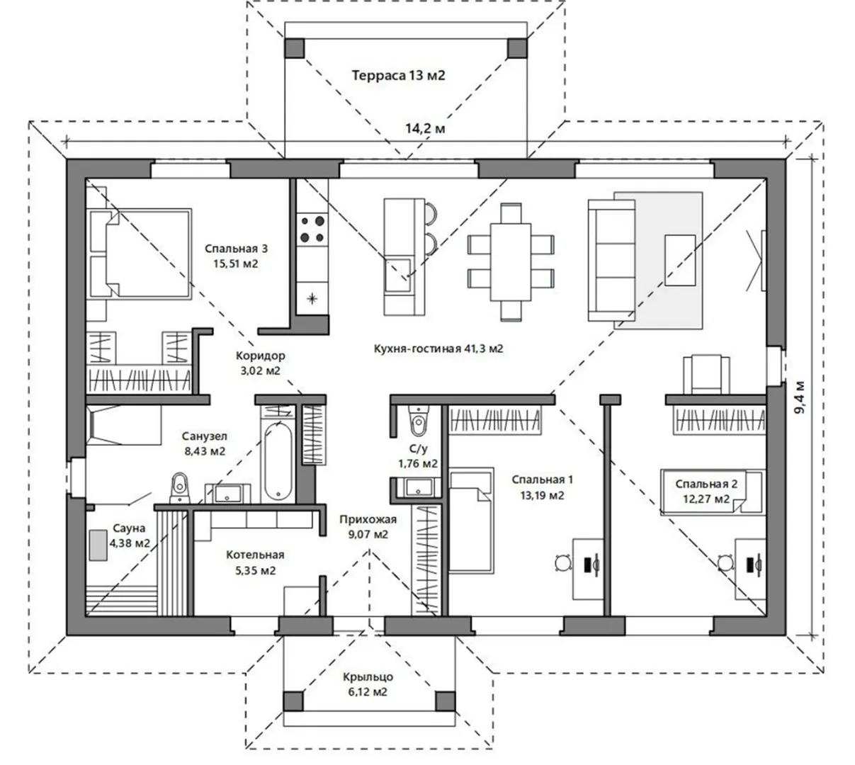 Площадь дома 127 м2