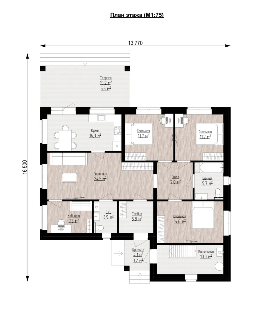 Заказать конусльтацию по:Одноэтажный дом на четыре спальни ДНК К140-124