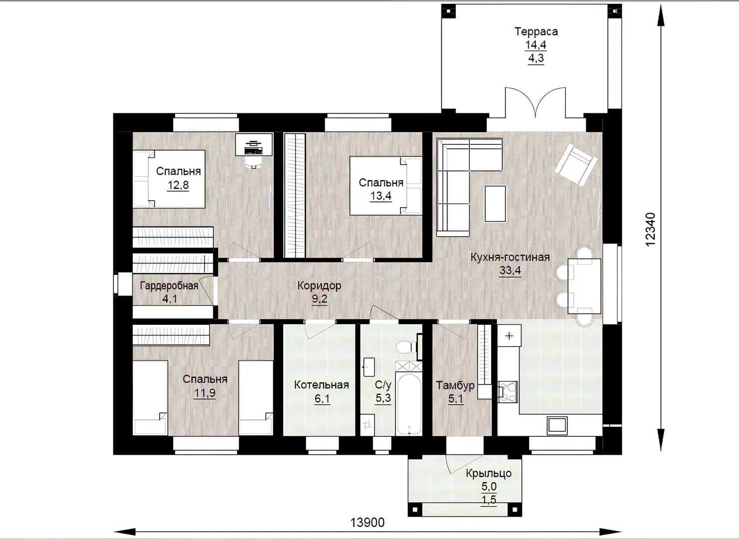 Одноэтажный дом на три спальни ДНК К120-107