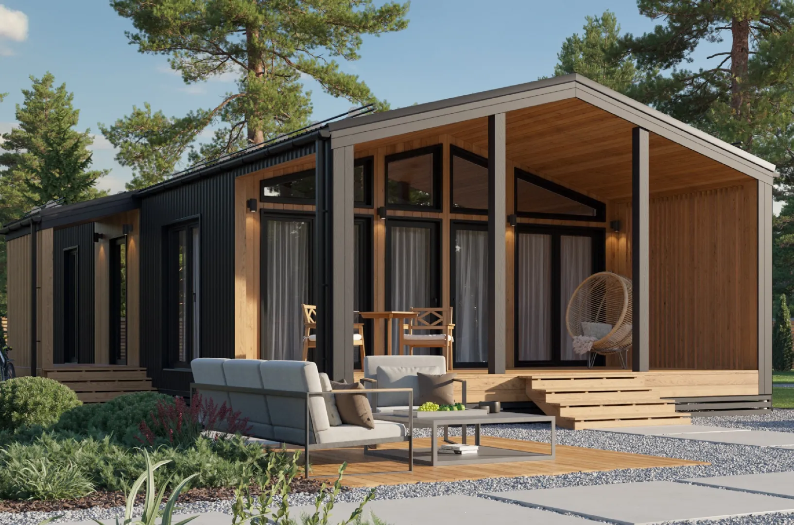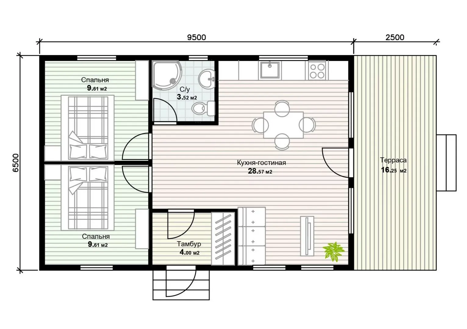 Одноэтажный дом с террасой и тремя спальнями