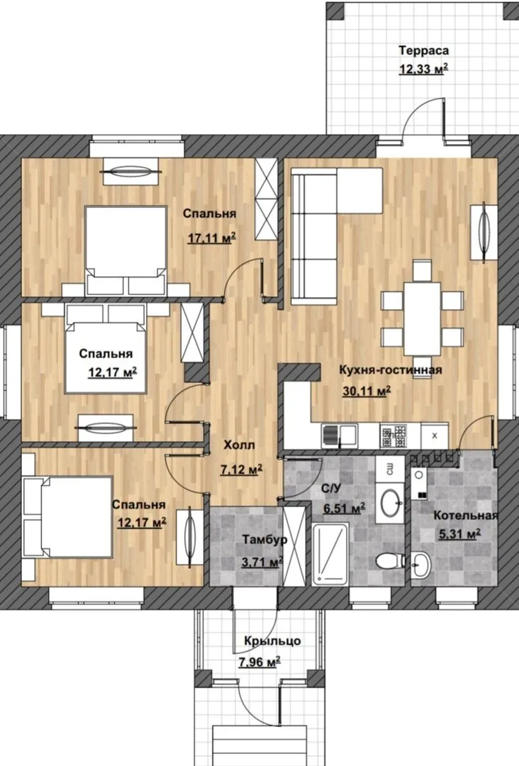 Притягательный, уютный и полностью готовый к круглогодичному проживанию – это наш одноэтажный дом категории НРК‑102. Вышедший из серии классических идей, он сочетает в себе проверенные временем принципы и современные удобства: стены, выполненные из красного кирпича, дарят ощущение тепла и надежности, а четырехскатная (вальмова) крыша сохраняет душевное спокойствие даже в самые капризные осенние дни. В интерьере уделяется внимание деталям: просторные зоны обеда и кухни созданы с нуля, чтобы каждый член семьи чувствовал себя комфортно, а светлые потолки и большие окна позволяют дышать свежим светом. Важнейшую роль играет наличие чердачного помещения – идеальное место для хранилища, создания хобби‑угла или уютной маленькой комната для отдыха. Трехмесечный доступ к просторной террасы, открытой от дома, приглашает проводить вечерние посиделки на природе, наслаждаясь видом на ухоженную забору и зелёные просторы. Отсутствие балконов, веранды и пристроенного гаража делает этот дом открытым и свободным от тяжёлой техники; вместо этого вы обретаете простоту современной жизни, ощущающуюся даже в самом привычном обиходе. Если вы ищете сдержанно‑красивый, но при этом полностью функциональный вариант жилья, который подарит вам и вашим близким комфорт, тепло и надёжность, наш дом НРК‑102 станет идеальным выбором.