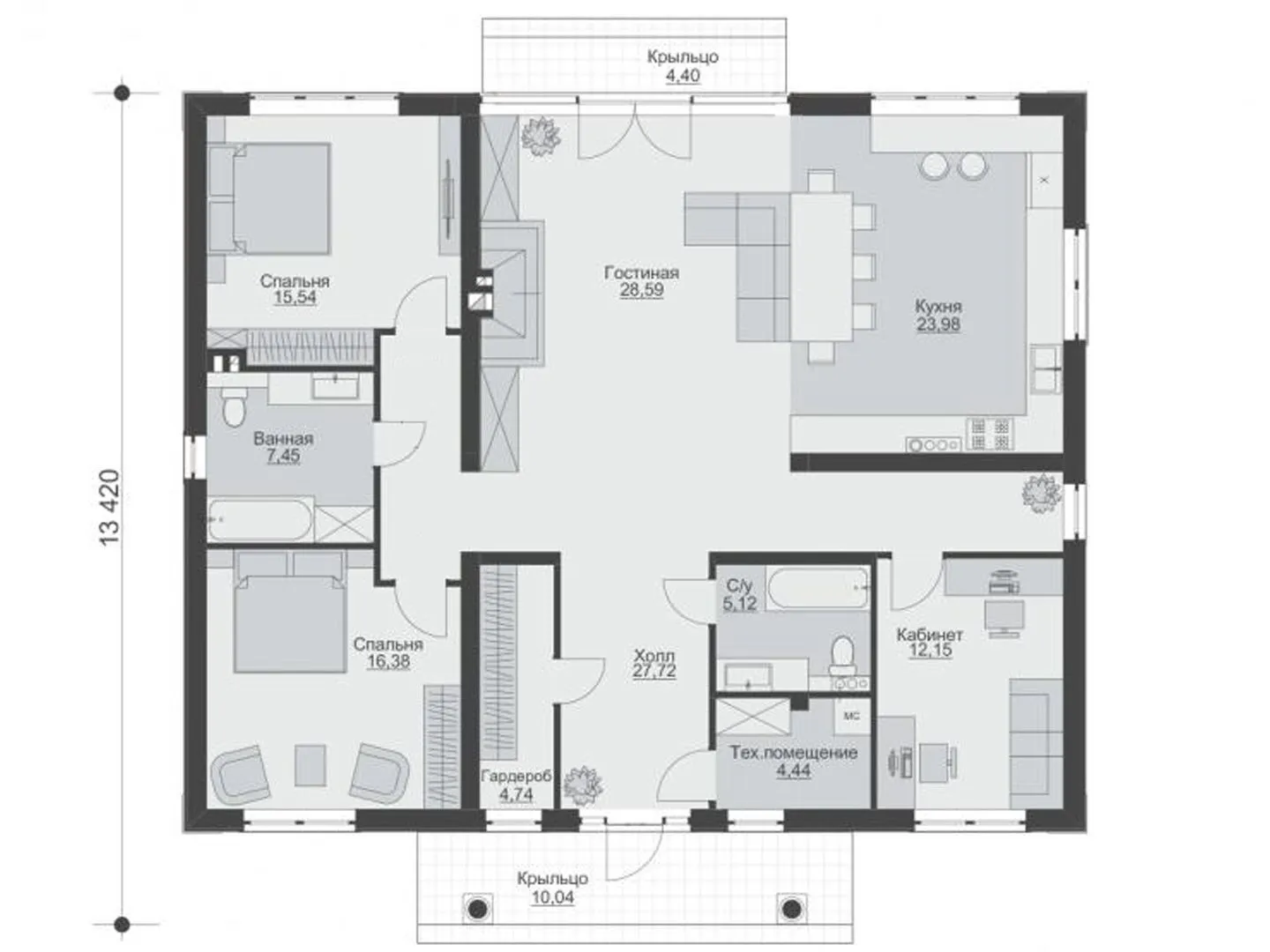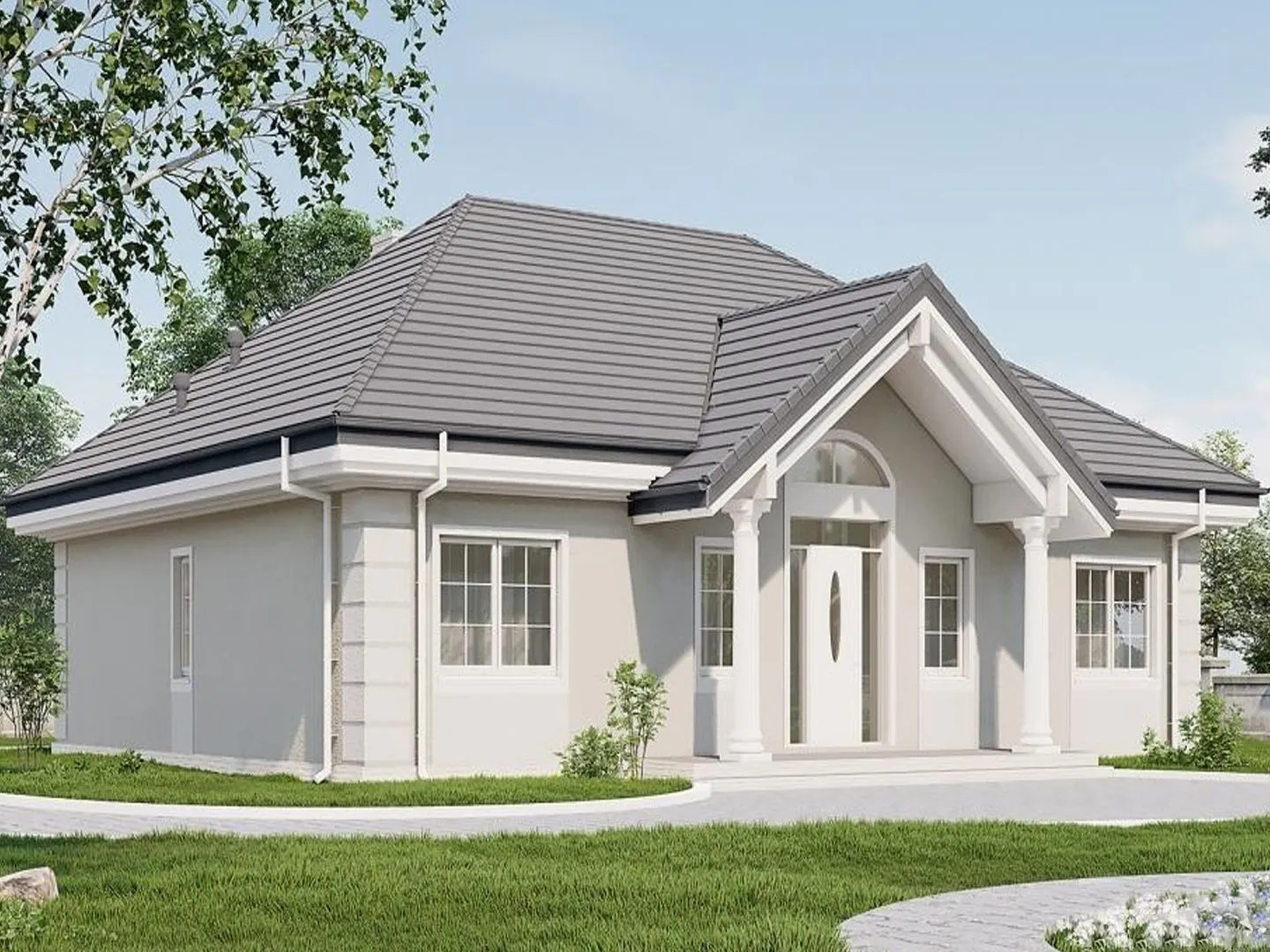 Незабываемый уют и элегантность европейского стиля ждут вас в этом одноэтажном доме O70. Сочетающий в себе простоту и изысканность, он создан для круглогодичного проживания: просторные комнаты, светлая планировка и качественные материалы, которые сохраняют тепло и спокойствие в любое время года. Внешняя стенка из газобетонных блоков гарантирует отличную тепло- и звукоизоляцию, а аккуратная четырехскатная (вальмовая) крыша придаёт фасаду стильный и гармоничный вид. В доме нет лишних «прозрачных» элементов – нет балконов, лоджий, веранд, гаражей и подвальных подвалов, что позволяет сконцентрироваться на создании уютного внутреннего пространства. Вместо открытых площадок вы получите теплую и уютную атмосферу внутри, где каждая комната обрамлена мягким светом и пропуски от световых входов делают интерьер ярким и живым. Простой, но лаконичный дизайн фасада делает дом гармоничным сочетанием классики и современных деталей, а внутренние детали – от аккуратной отделки до продуманной планировки, способствуют комфортному проживанию. Этот дом – идеальное решение для тех, кто ценит безмятежность, тепло и неприхотливый стиль жизни. Закажите просмотр уже сегодня и убедитесь, что европейская элегантность может жить в вашем собственном дворе.
