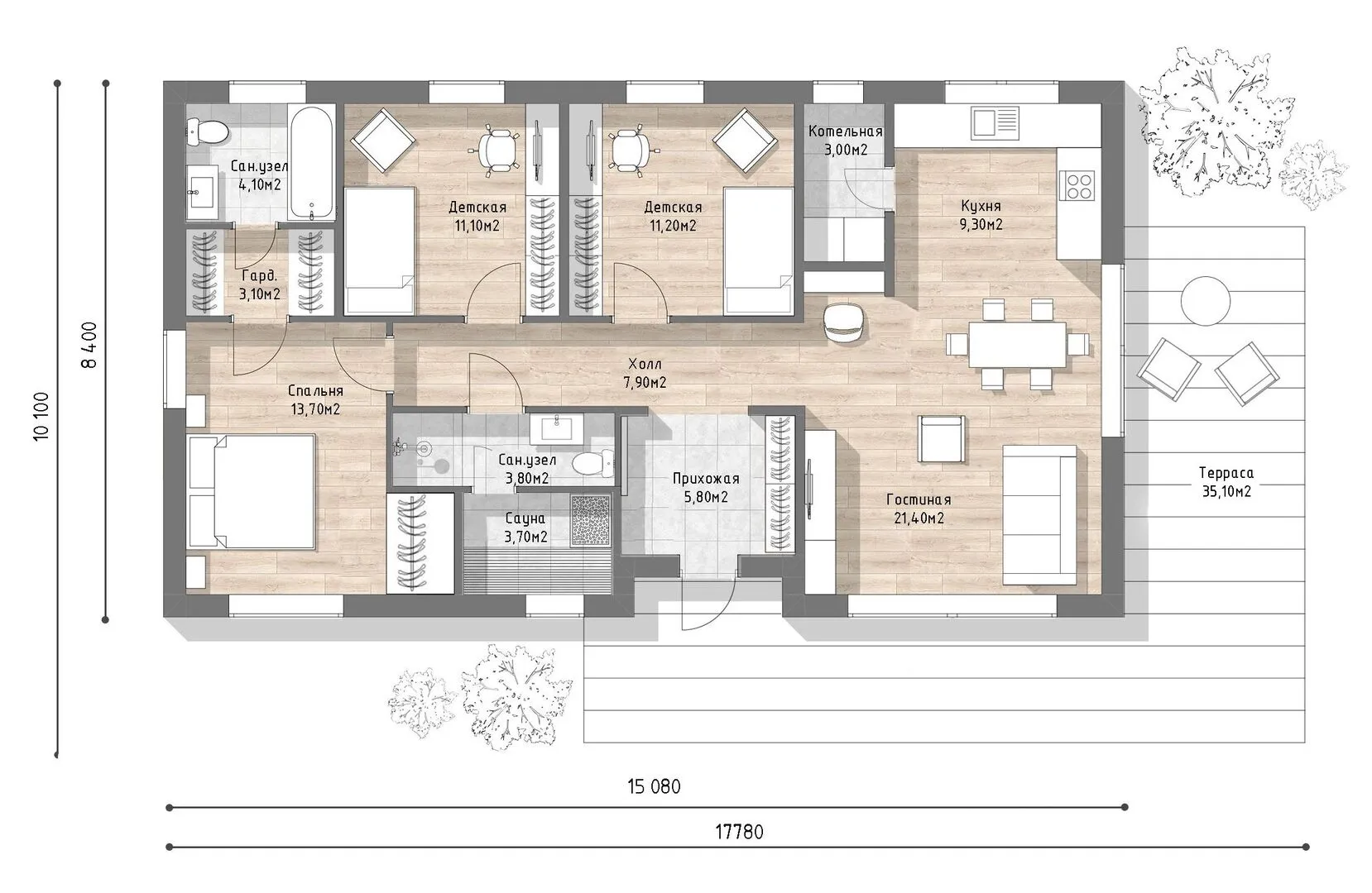 Заказать конусльтацию по:Одноэтажный дом от компании UNIT серии Комфорт — 98 ТК