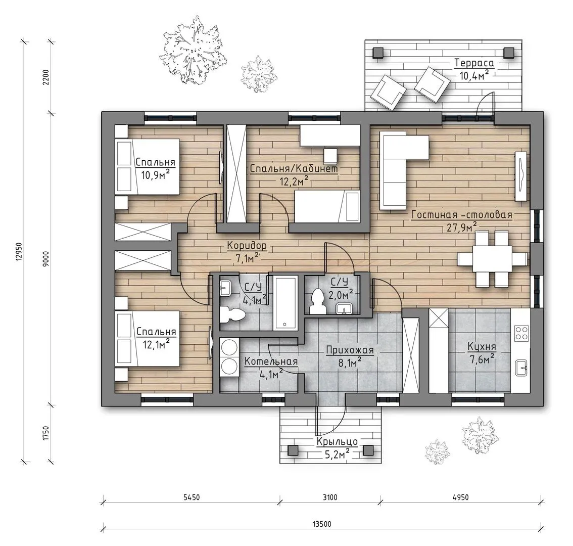 Одноэтажный семейный дом Аист-1 (3 спальни)