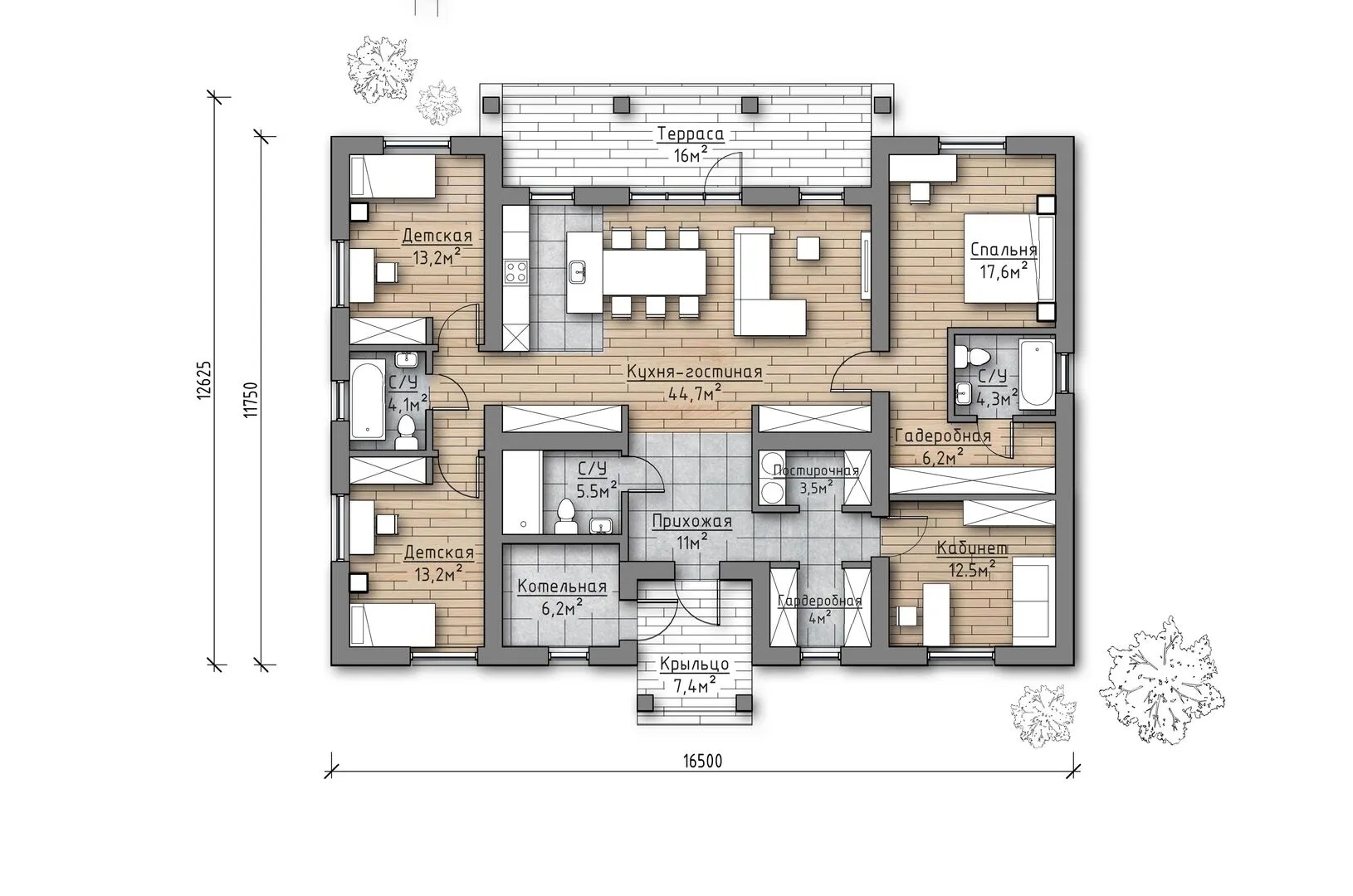 Одноэтажный дом от компании UNIT серии Классика 146 ТК