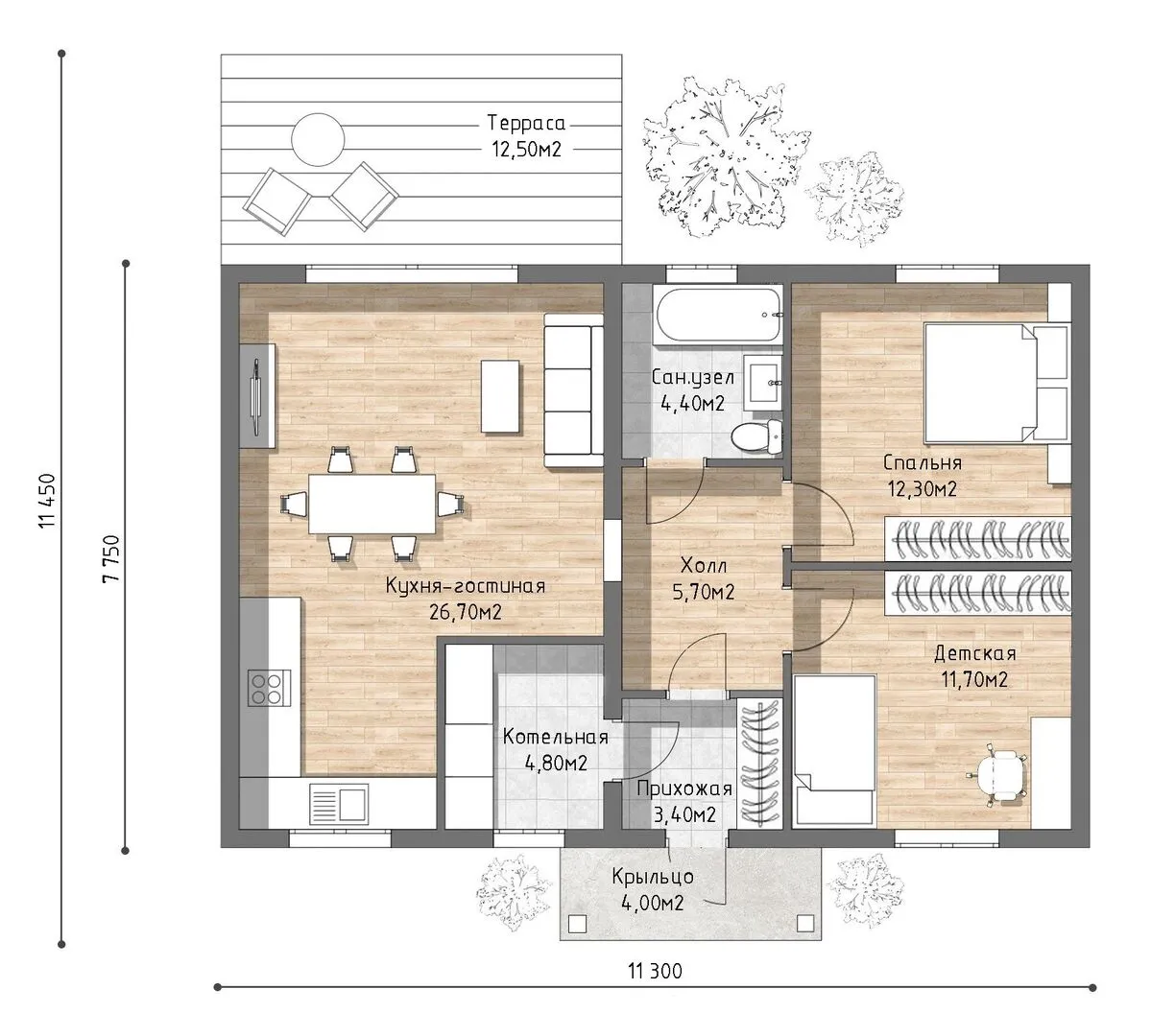 Заказать конусльтацию по:Одноэтажный дом от компании UNIT серии Комфорт — 69 ТК