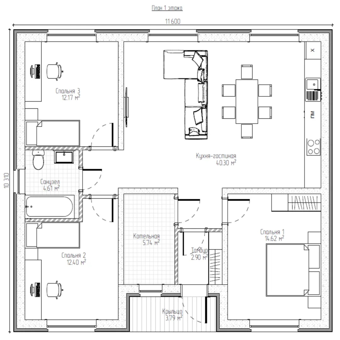 Одноэтажный дом ПГ -10