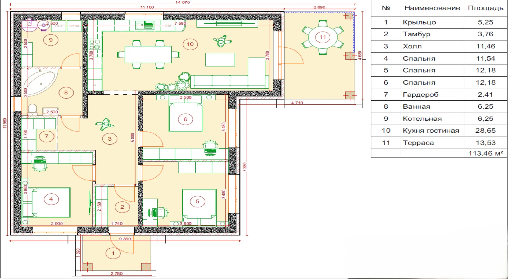 Площадь дома 113 м2