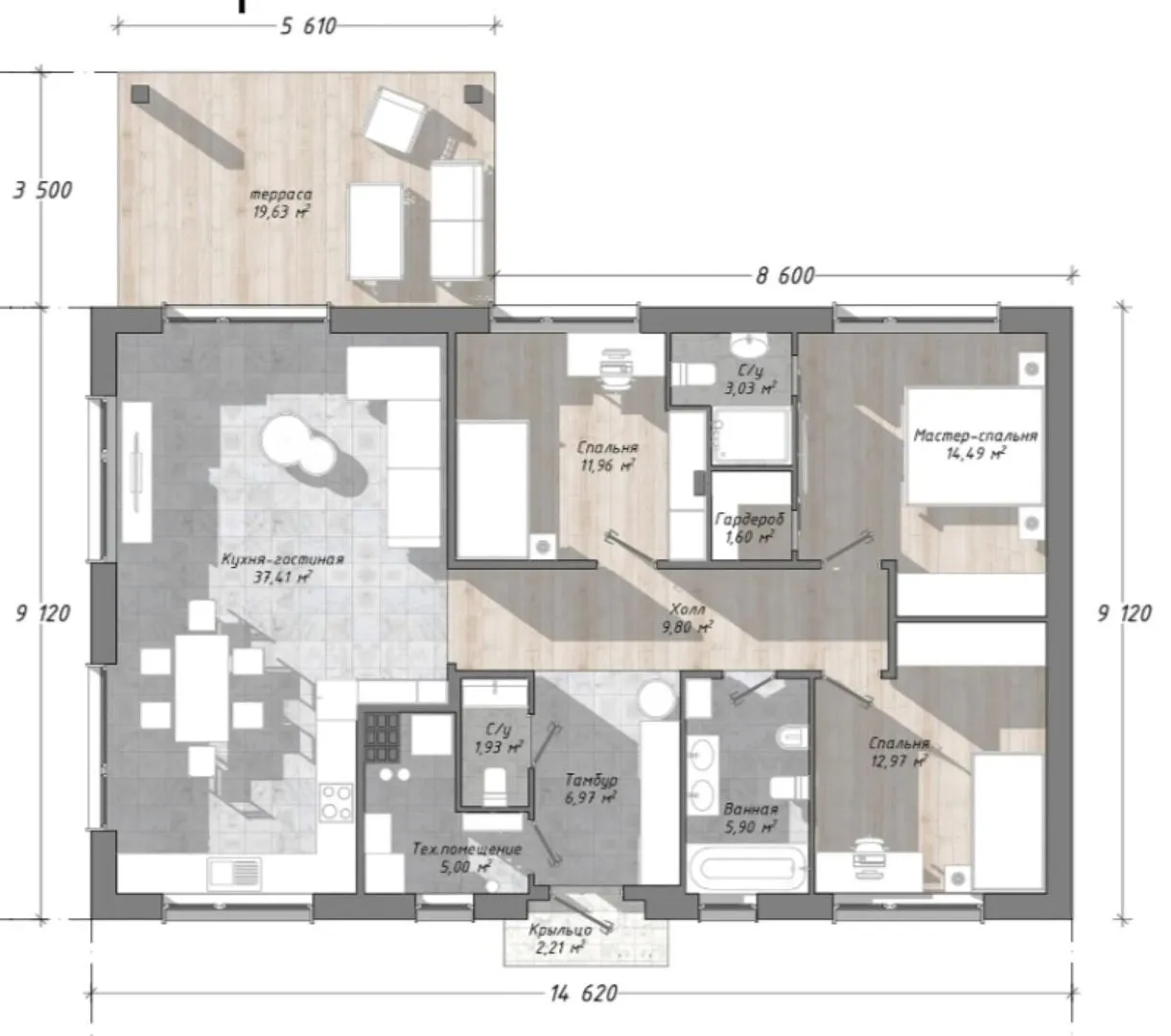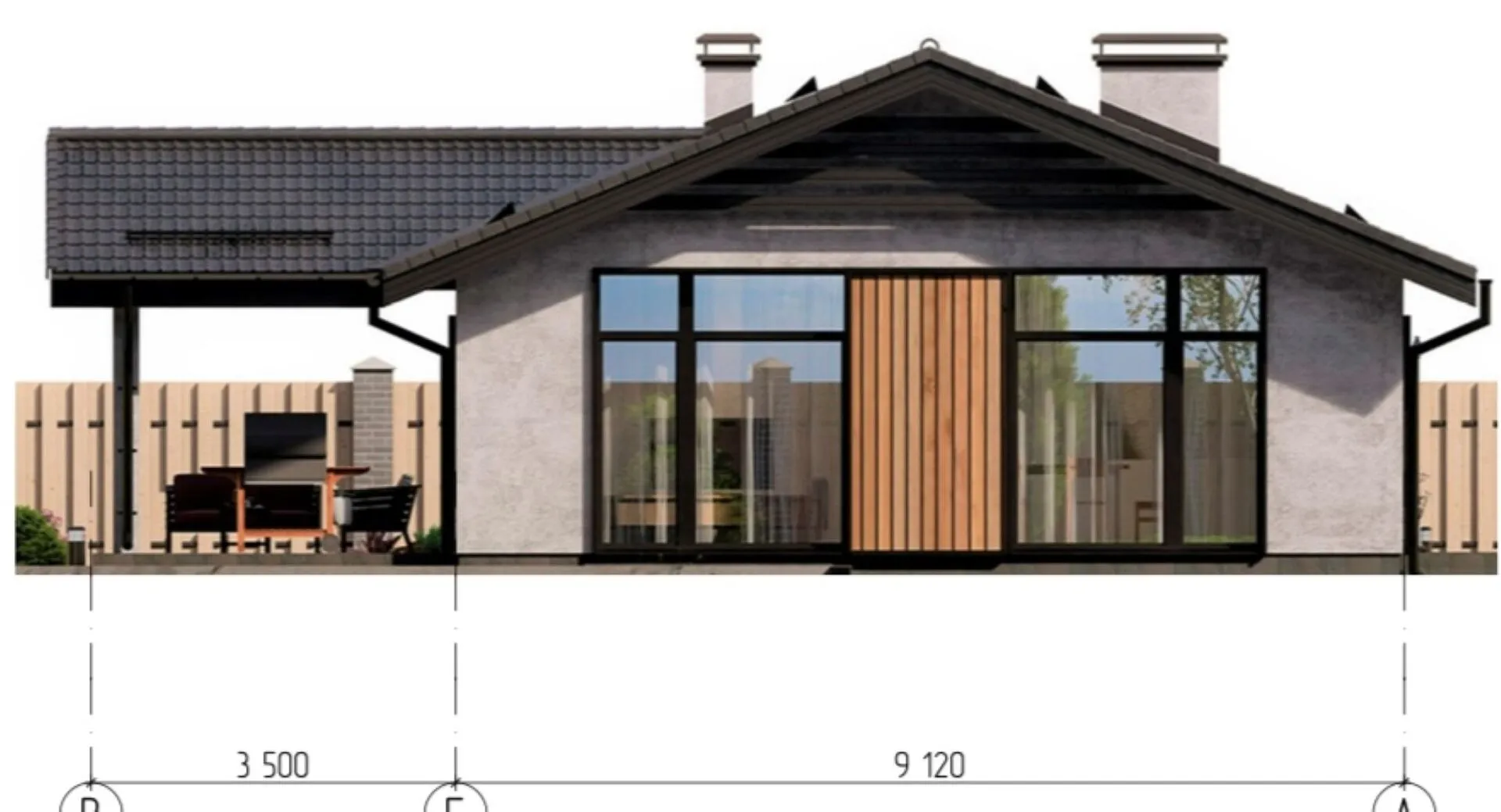 Одноэтажный дом по каркасной технологии РС-9