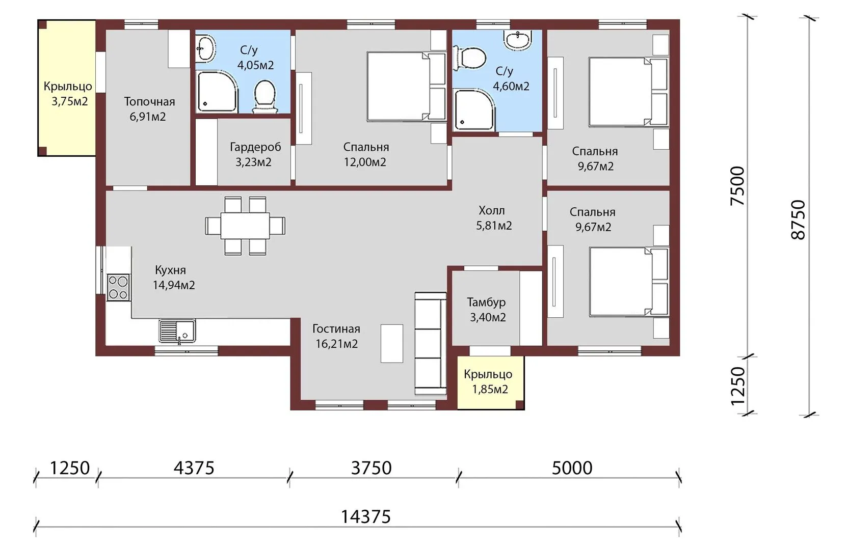 Заказать конусльтацию по:Одноэтажный дом по проекту № 9