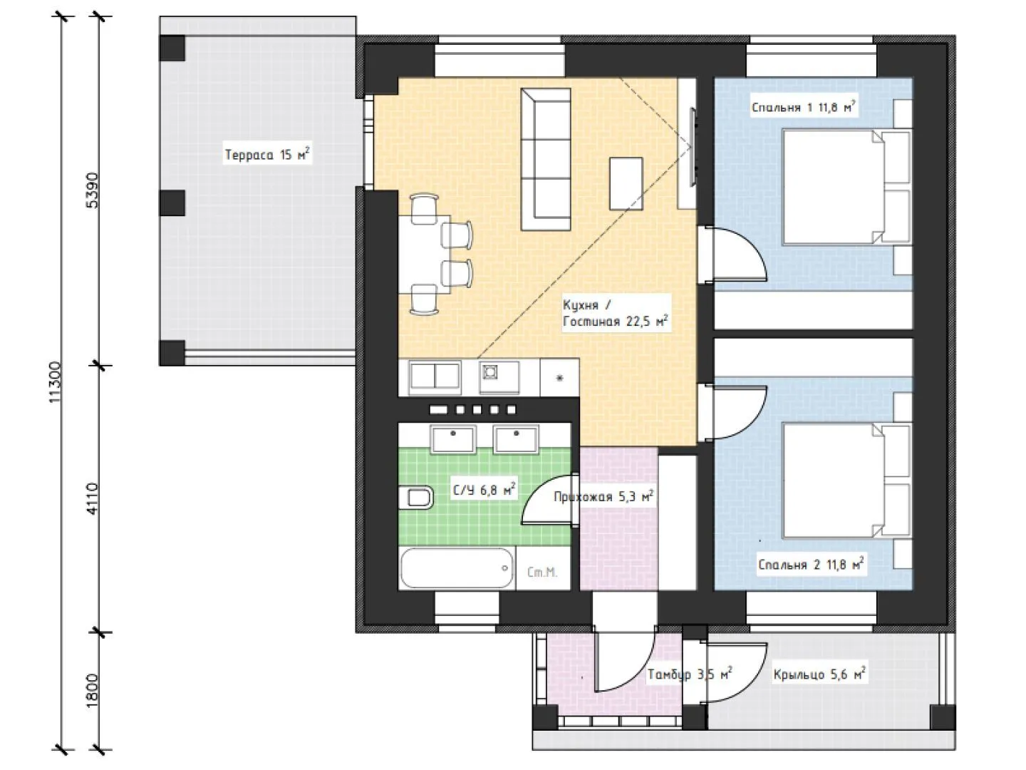 Заказать конусльтацию по:Одноэтажный дом «Ронда» 81 м2