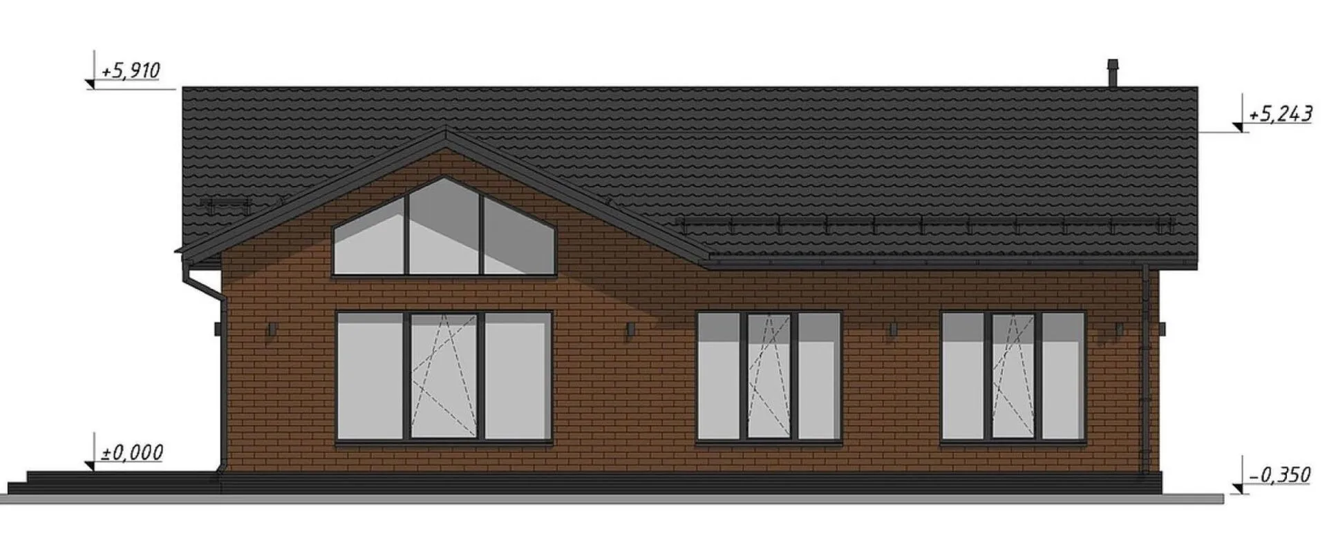 Заказать конусльтацию по:Одноэтажный дом с большими окнами S-108