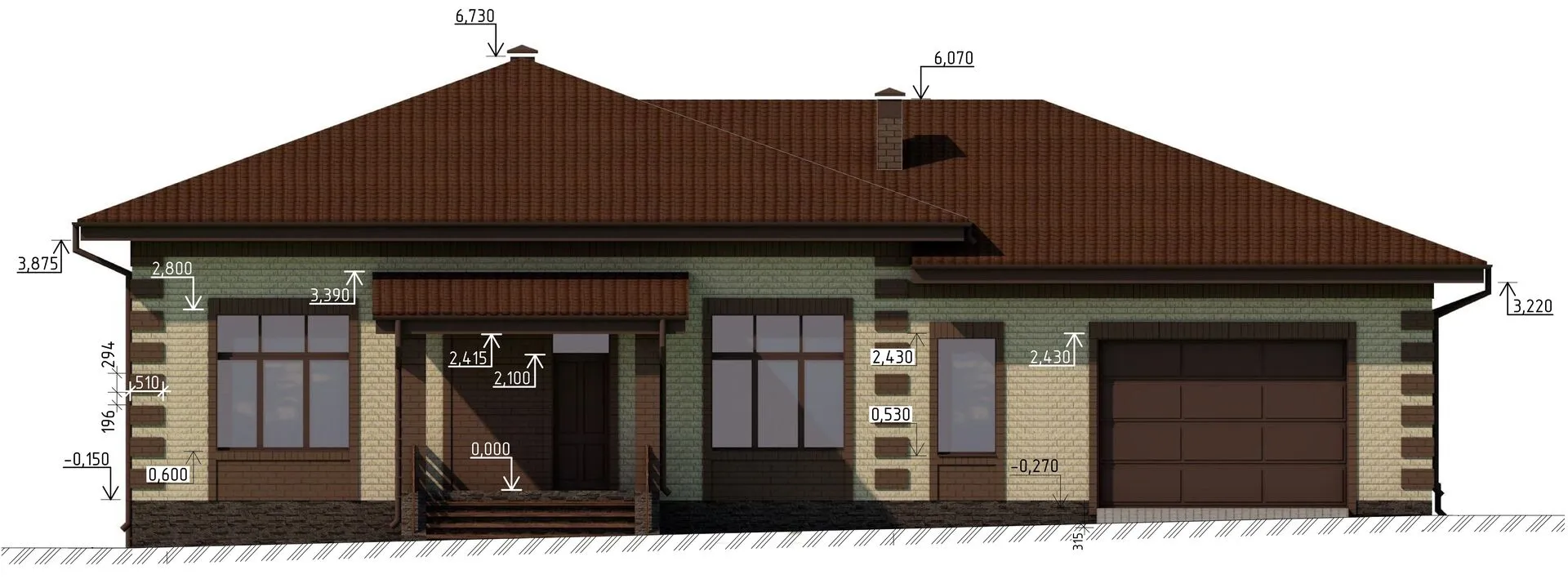 Одноэтажный дом с гаражом АС-86/ОД-207,44/24