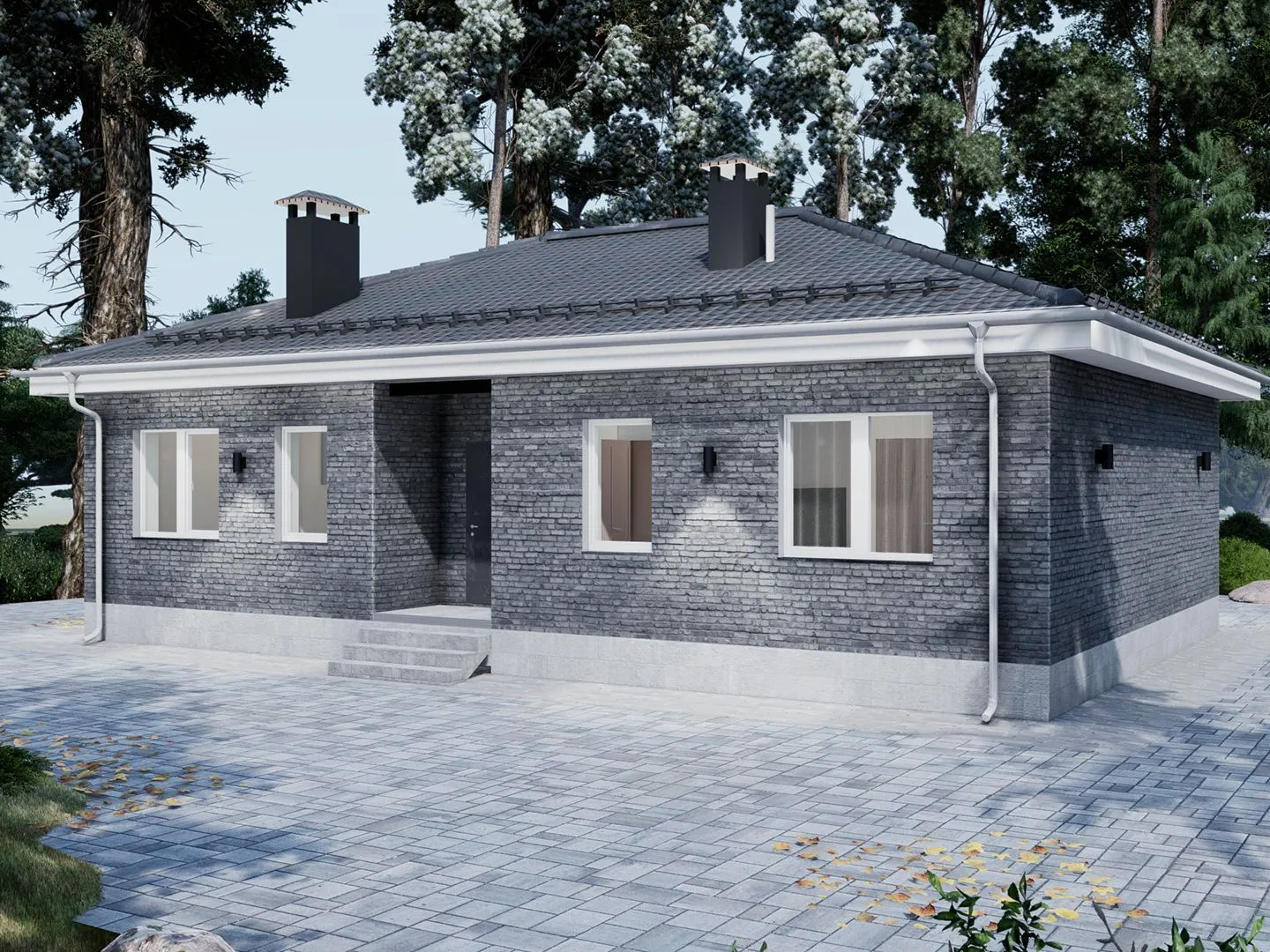 Одноэтажный дом с крыльцом Family -101