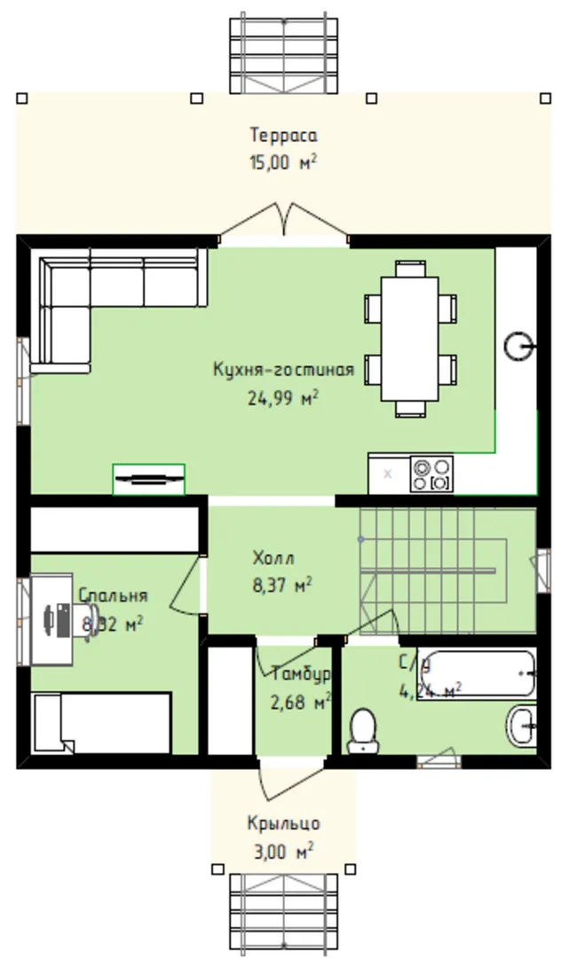 Одноэтажный дом с мансардным этажом 7,5х7,5