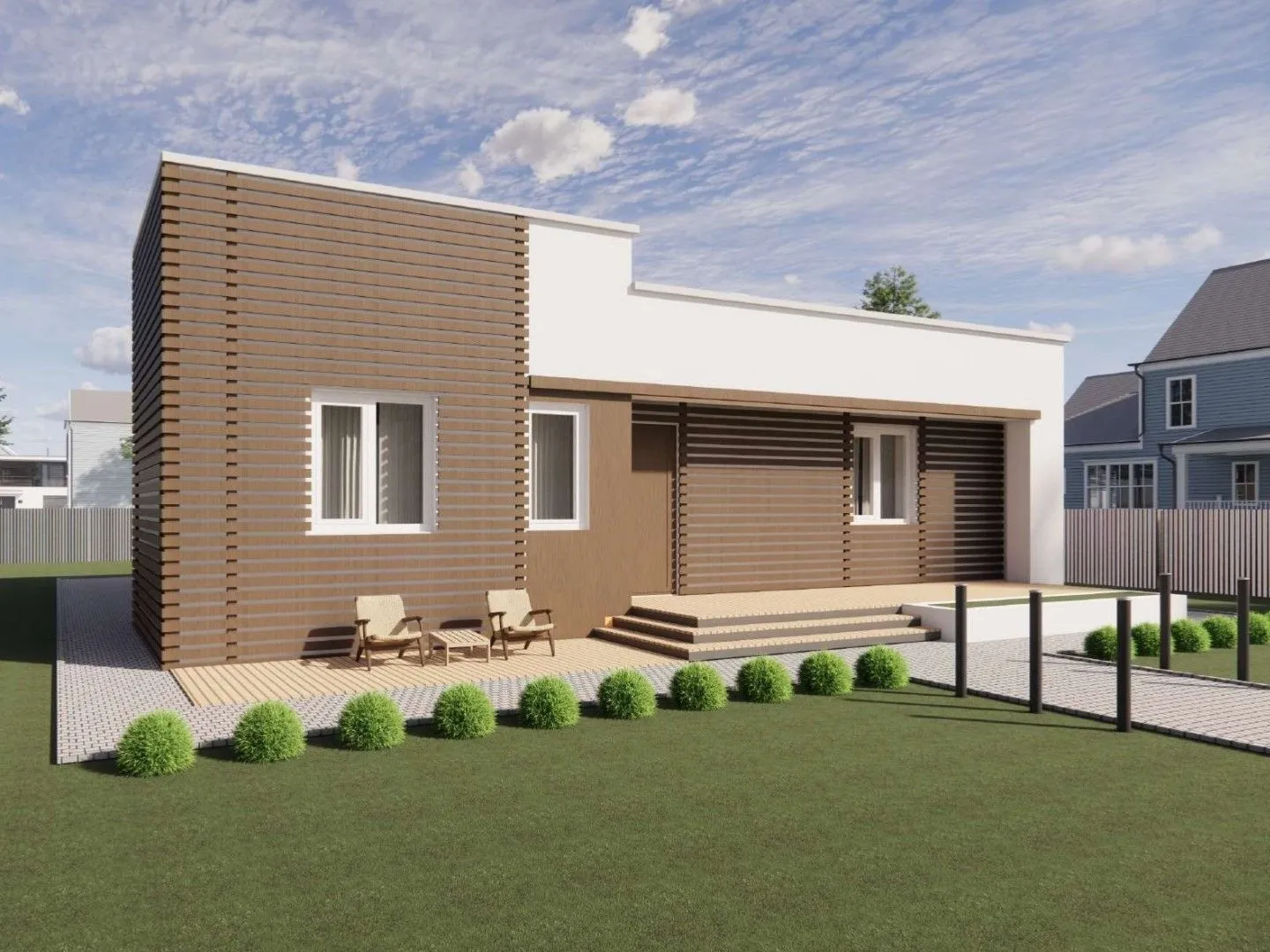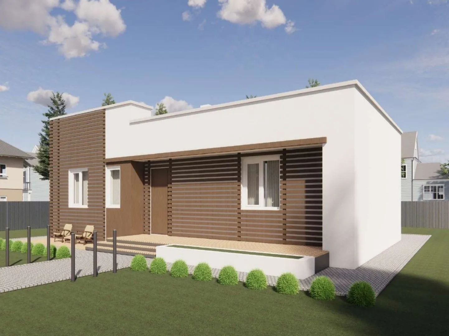 Одноэтажный дом с плоской крышей