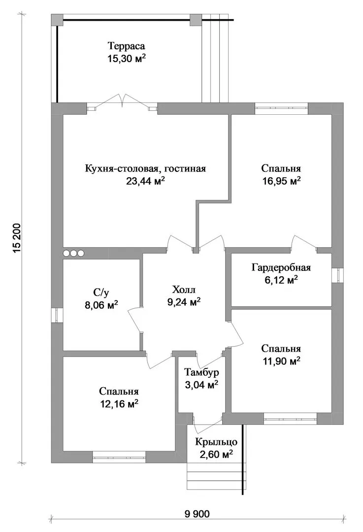 Одноэтажный дом с террасой «Фобос»