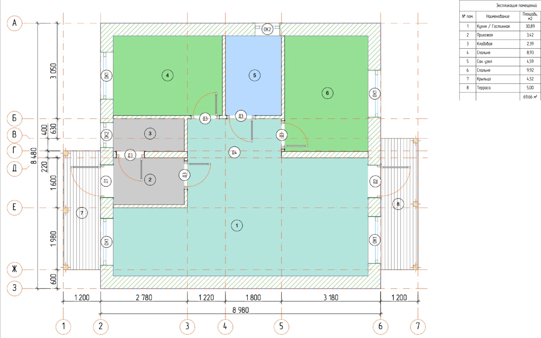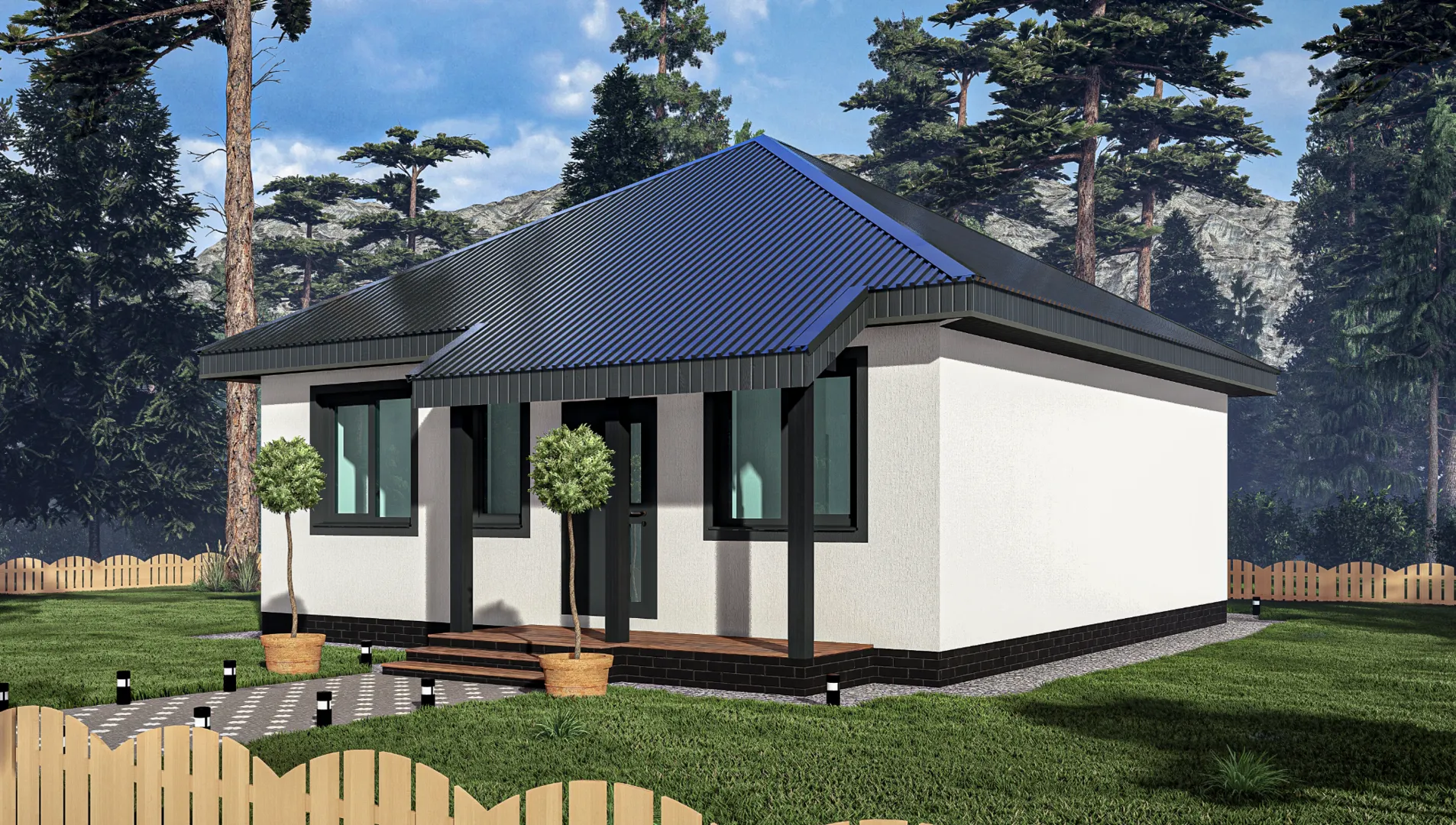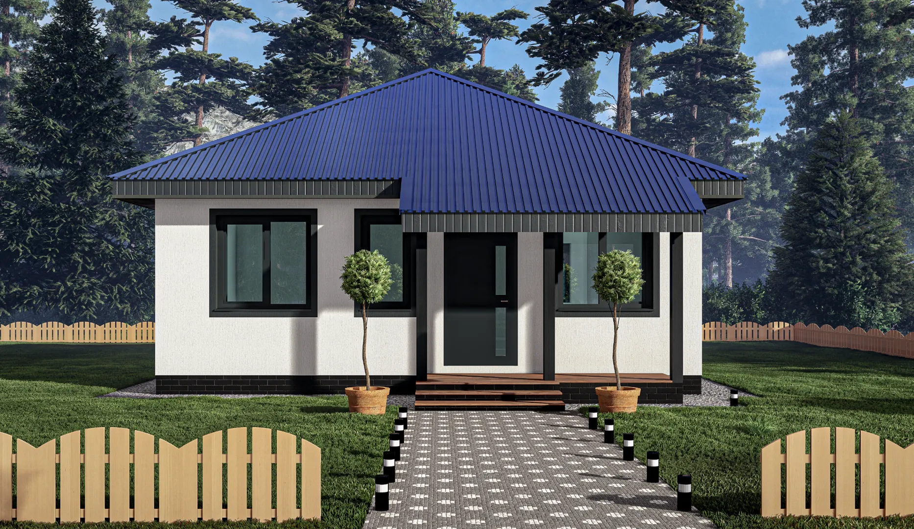 Одноэтажный дом с террасой