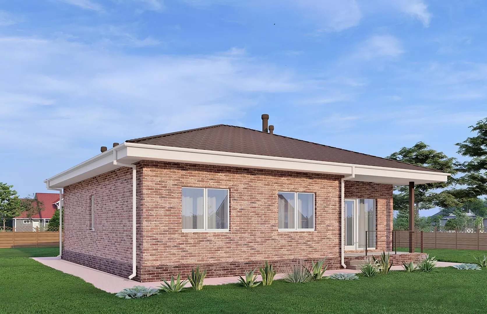 Одноэтажный дом с тремя спальнями, камином и террасой