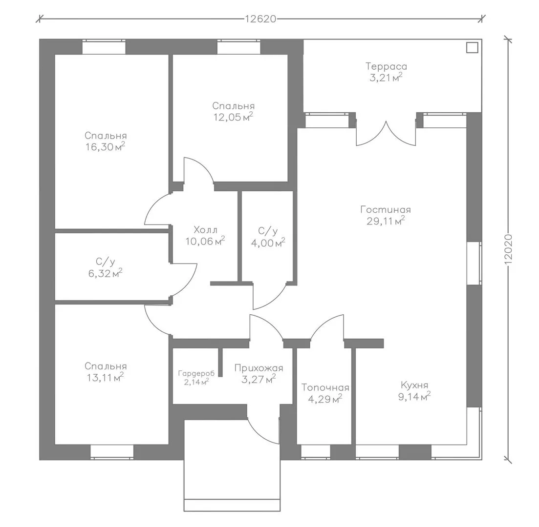 Заказать конусльтацию по:Одноэтажный дом с тремя спальнями SS-113