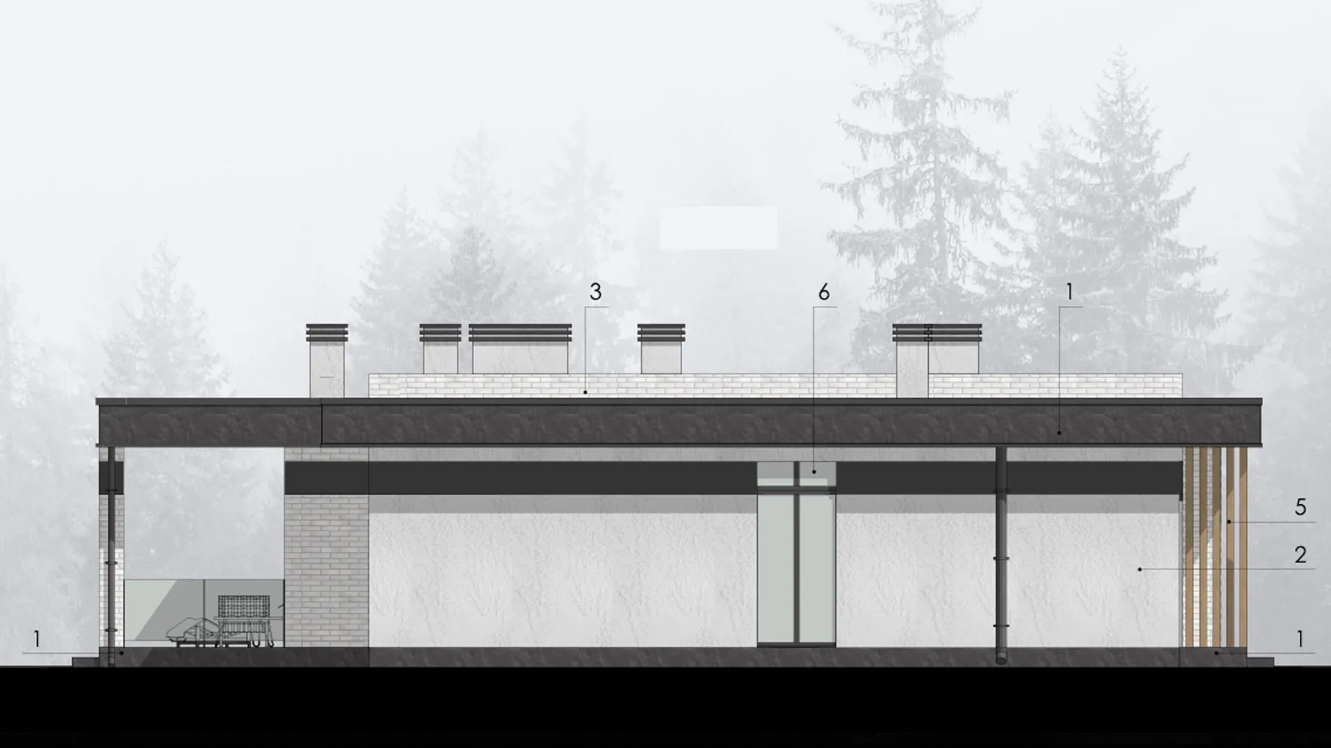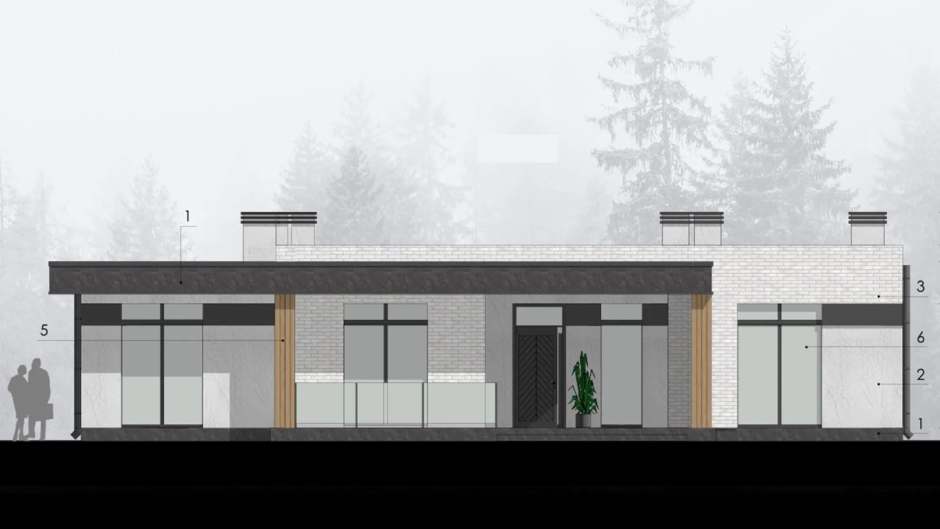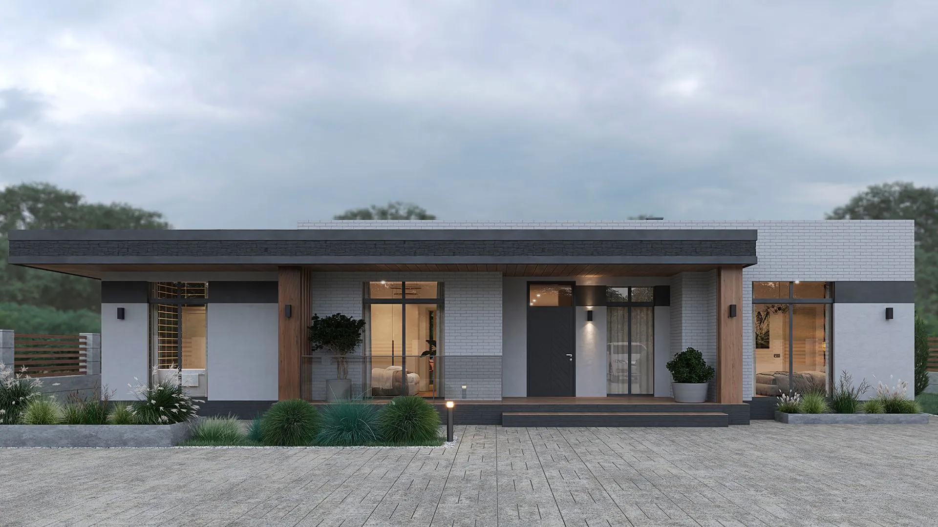 Одноэтажный дом с верандой в стиле минимализм