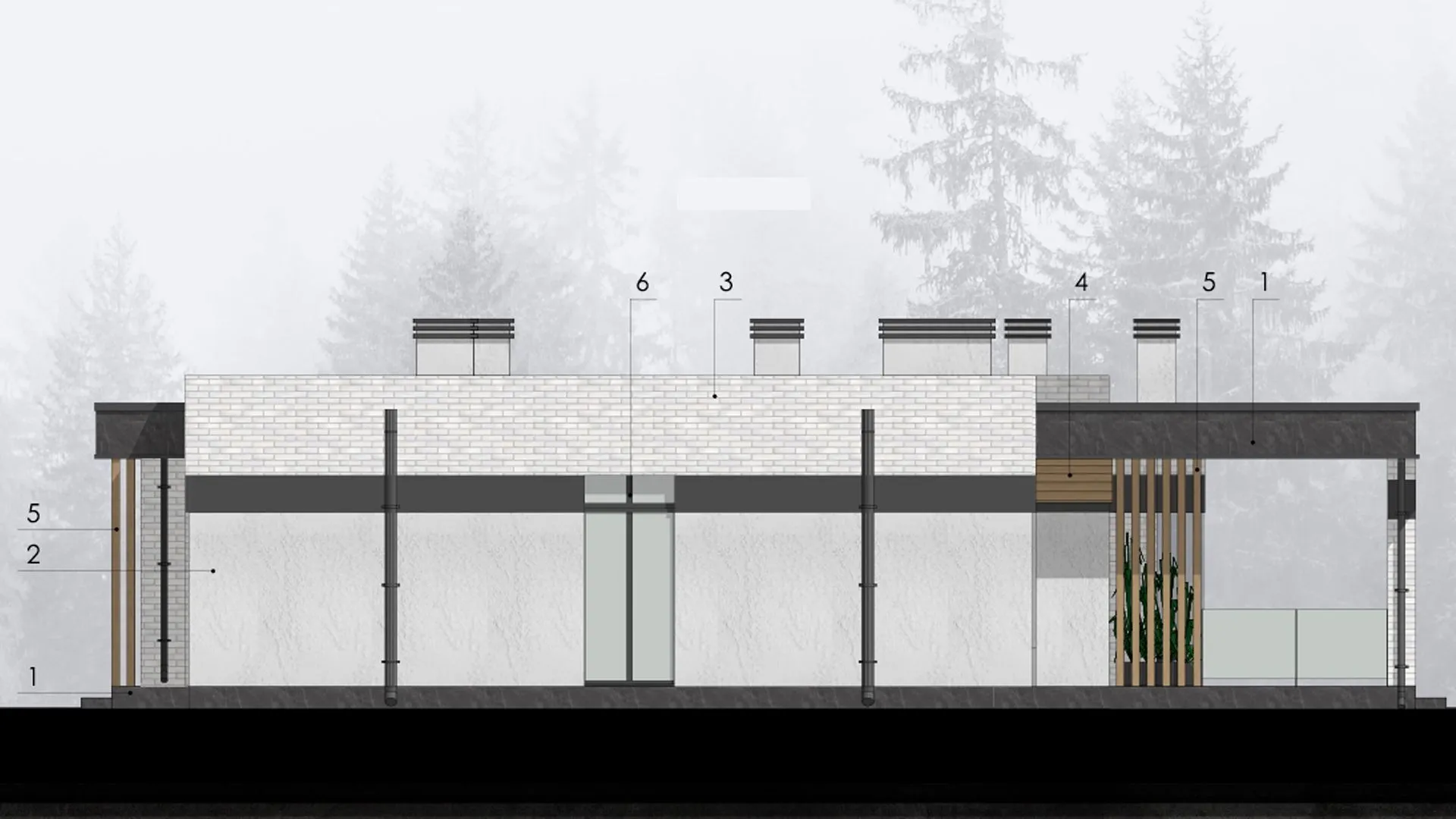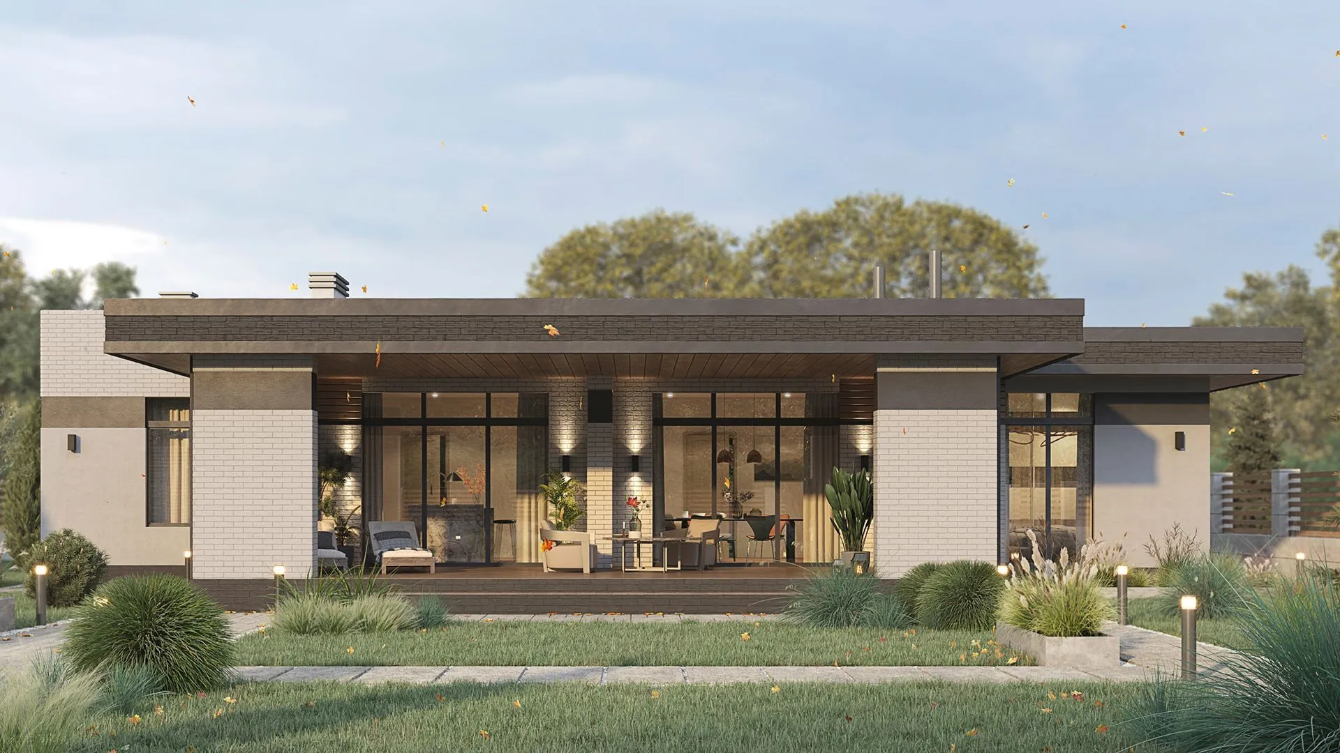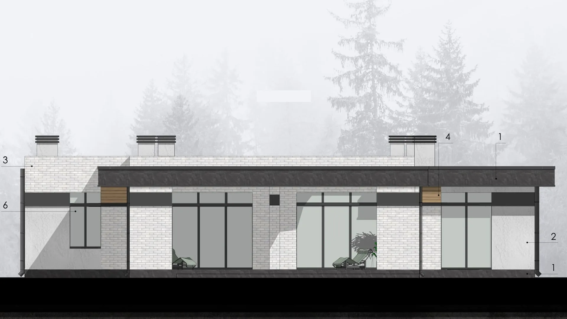 Одноэтажный дом с верандой в стиле минимализм