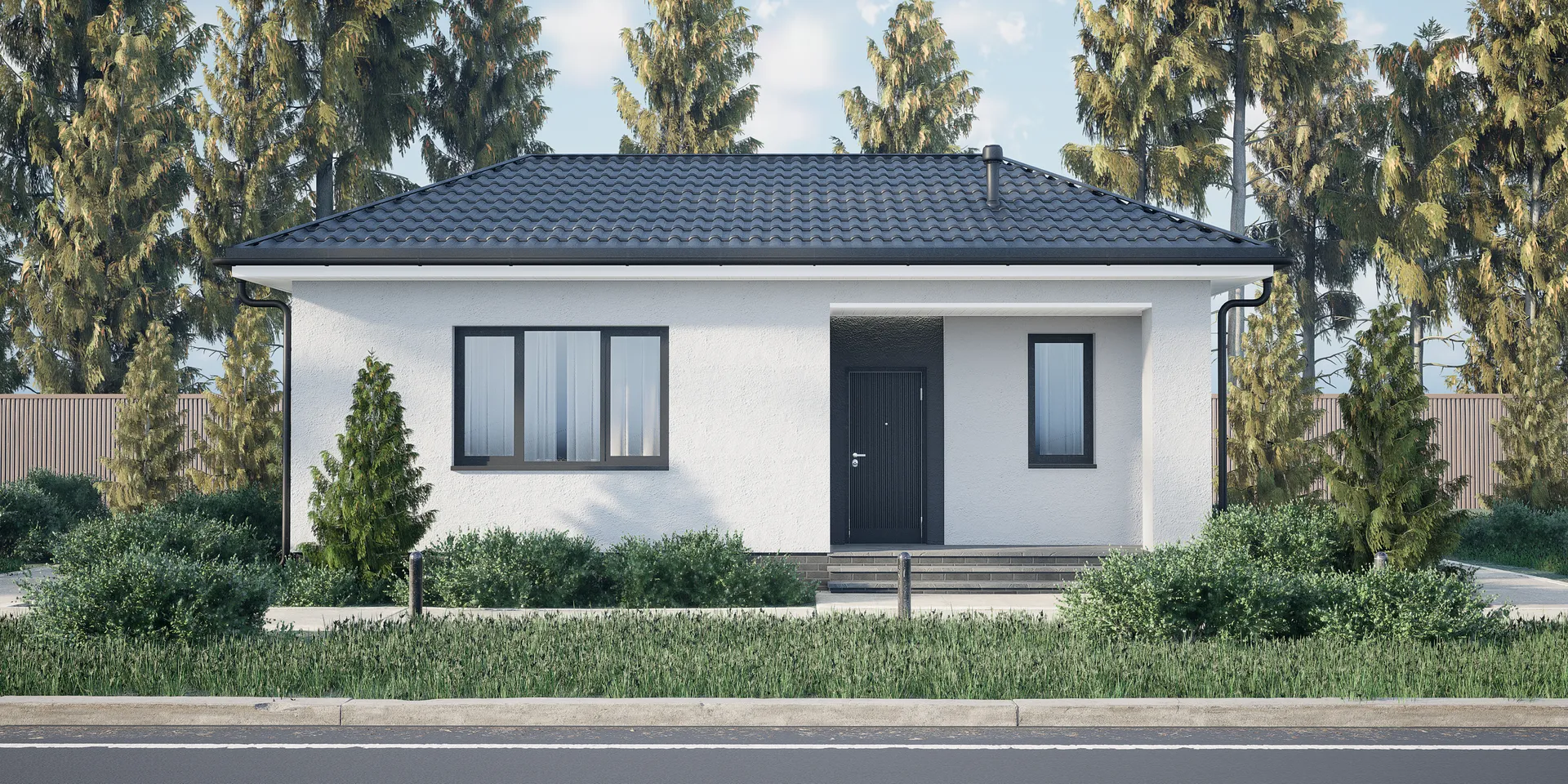 **Одноэтажный дом СКАЙ‑60** – это воплощение современного минимализма, где каждая деталь продумана так, чтобы создавалось чувство простоты и уюта. Городские шумы отодвинуты за пределы газобетонной стены, а ровно подкошенный четырёхскатный (валмовой) ковер шторки в виде крыши создаёт ощущение защищённости и одновременно открывает пространство без лишнего громоздкого навеса. Окна, как искрящиеся окна в мир, пропускают свет, придавая интерьеру живое и динамичное ощущение. В доме предусмотрено круглогодичное проживание – тепло и комфорт даже в самые холодные дни благодаря качественному теплоизоляционному материалу и продуманной планировке. Просторное чердачное помещение становится дополнительным приватным уголком: это может быть как уютный кабинет, так и игровая зона для детей. Несмотря на отсутствие балконов, лоджий и веранд, пространство адаптируется под любые ваши потребности – от зоны отдыха до рабочего кабинета, всегда сохраняя чистоту линий и лаконичную эстетику. Для тех, кто ценит простоту и функциональность, СКАЙ‑60 – это не просто дом, а вдохновляющее пространство, где минимализм становится ключом к гармонии с окружающим миром. Прозрачность конструкции, современные материалы и продуманный дизайн создают идеальные условия для комфортной жизни, делая каждый день полным идиллической простоты.