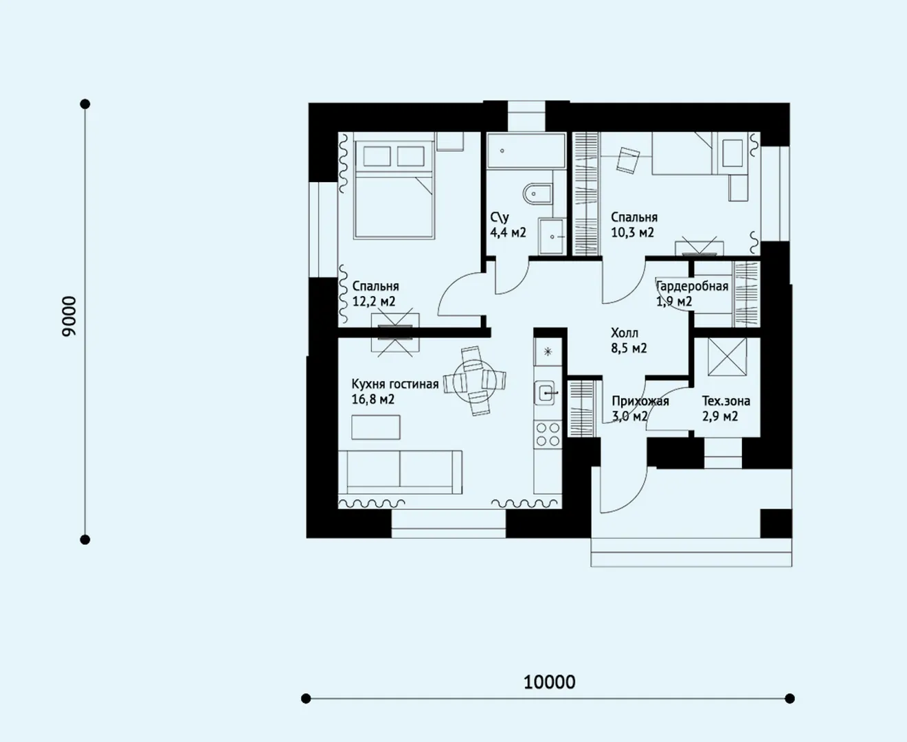 Одноэтажный дом СКАЙ-60